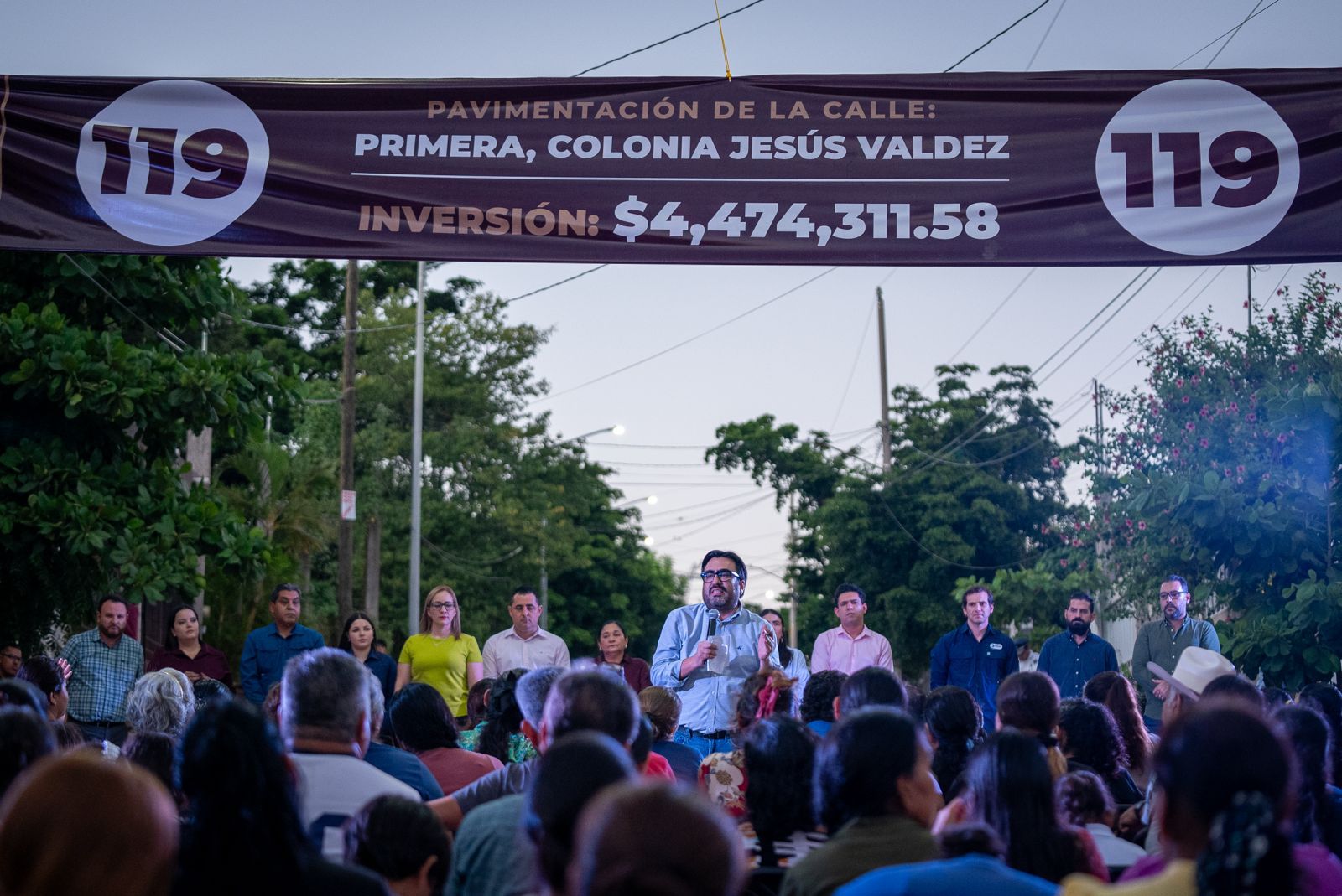 El alcalde Juan de Dios Gámez Mendívil encabezó la entrega de esta vialidad, que se convierte en la calle pavimentada número 119 en lo que va de su administración, reafirmando su compromiso de llevar obras con sentido social a las colonias que durante años permanecieron en el olvido.