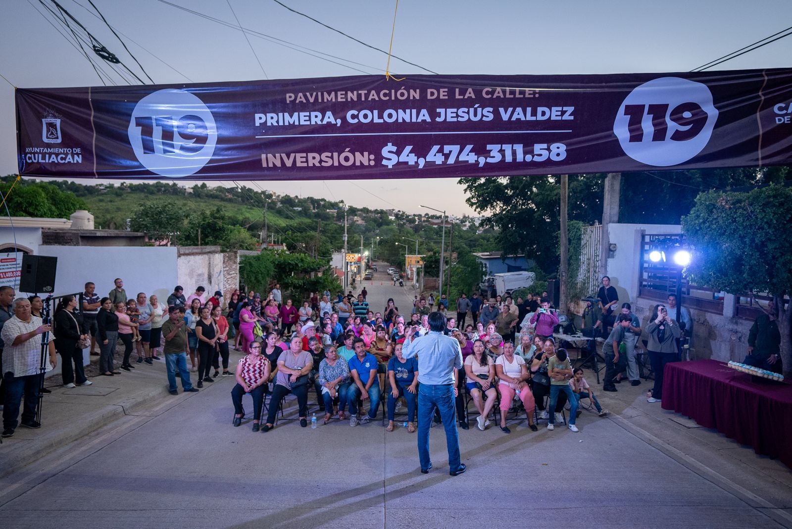 Culiacán, Sinaloa.- Después de cuatro décadas de espera, los vecinos de la colonia Jesús Valdez vieron hecho realidad un anhelo largamente postergado: la pavimentación de la calle Primera, una obra que mejora su entorno y su calidad de vida.