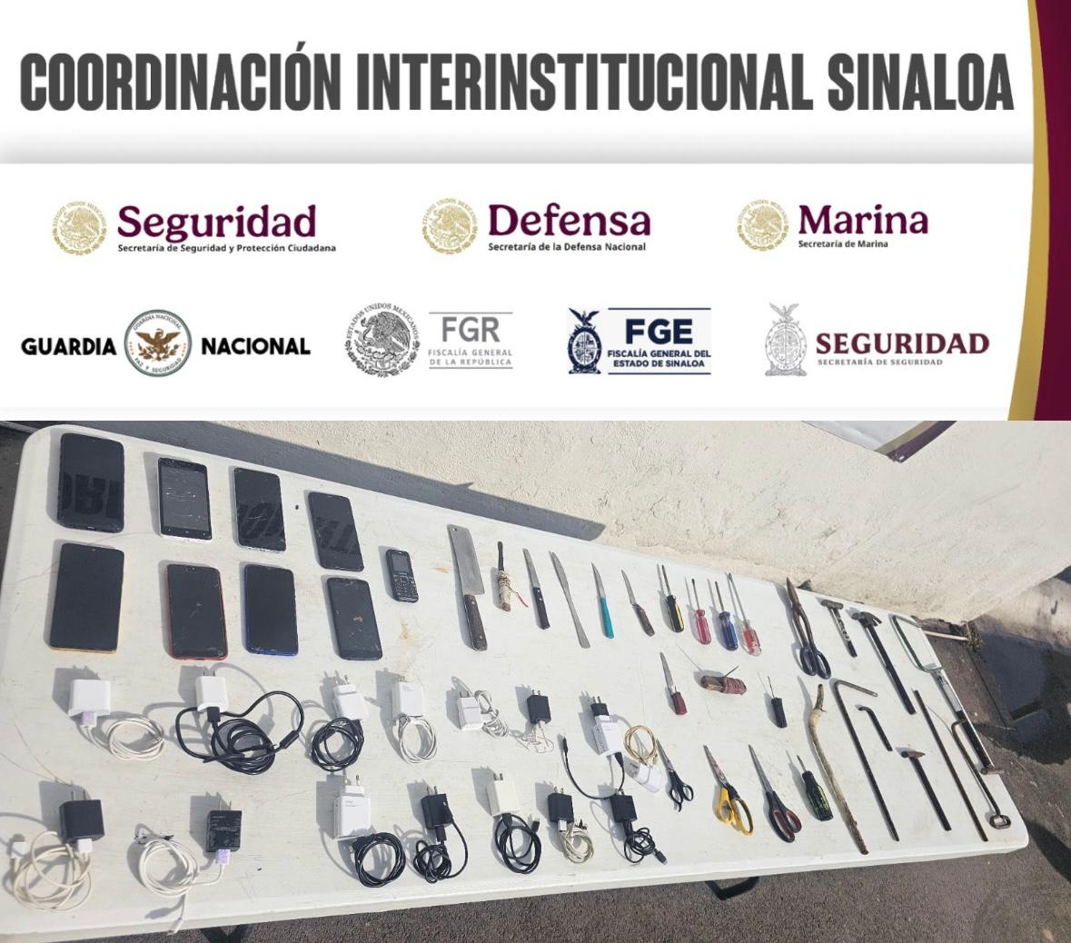 Culiacán, Sinaloa.- Elementos de la Secretaría de Seguridad Pública de Sinaloa, a través del Grupo de Operaciones Especiales Sinaloa de la Policía Estatal Preventiva, en coordinación con el Ejército Mexicano, la Guardia Nacional, la Secretaría de Marina, la Secretaría de Seguridad y Protección Ciudadana, la Fiscalía General de la República y la Fiscalía General del Estado, llevaron a cabo la revisión de dos módulos del Centro Penitenciario Aguaruto, en Culiacán, este martes 10 de noviembre.
