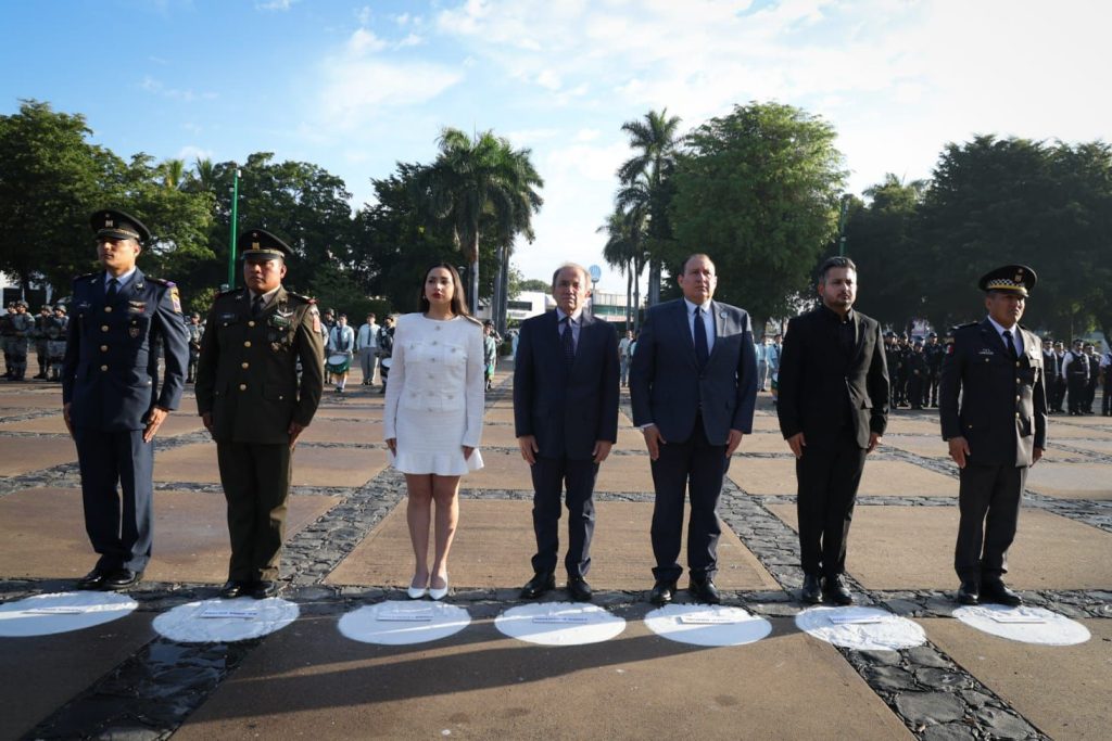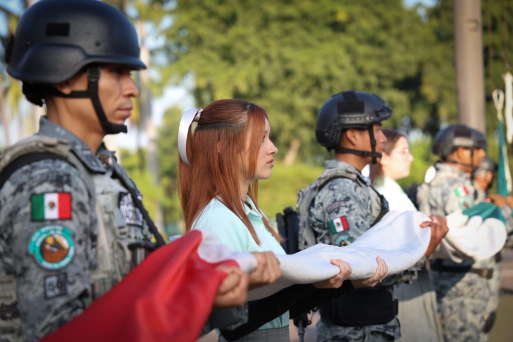 Como parte de la actividad, los presentes presenciaron el izamiento de nuestra Bandera a toda asta con honores de ordenanza y entonaron el Himno Nacional Mexicano, acompañados por las Bandas de Guerra de la Guardia Nacional y del Plantel 23 “Profra. María Trinidad Dórame”, así como por la Escolta de Bandera de esta misma comunidad educativa.