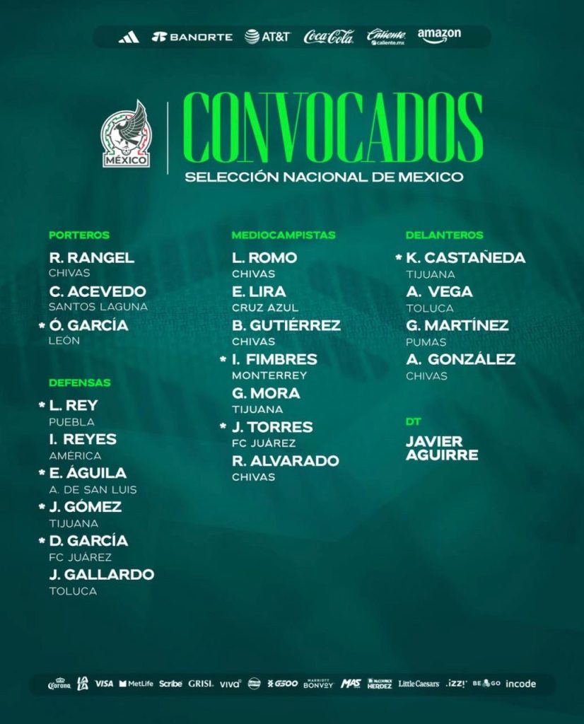MÉXICO.- El director técnico de la selección mexicana de futbol, Javier Aguirre, dio a conocer este martes la lista de jugadores convocados para iniciar la concentración del próximo 6 de mayo rumbo al Mundial FIFA 2026 a jugarse en México, Estados Unidos y Canadá.