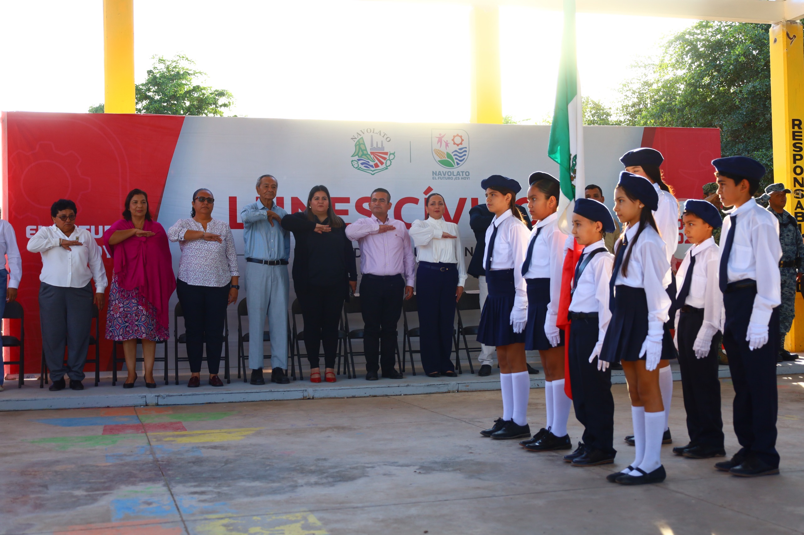 Navolato, Sinaloa.- Con una convicción firme de que la educación es la herramienta más poderosa para transformar vidas y comunidades, el Presidente Municipal de Navolato, Dr. Jorge Rosario Bojórquez Berrelleza, encabezó el Lunes Cívico en la Escuela Primaria Niños Héroes, en la comunidad de El Molino, sindicatura de Sataya, donde entregó la rehabilitación de la techumbre como parte de su política de fortalecer la infraestructura educativa municipal.