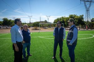 Otro de los espacios supervisados, fue la construcción de la cancha de fútbol con pasto sintético, y de voleibol en el Sendero de Paz ubicado el bulevar Agricultores, que ya registra la instalación de alumbrado público y andadores seguros con impacto positivo en la ciudadanía.