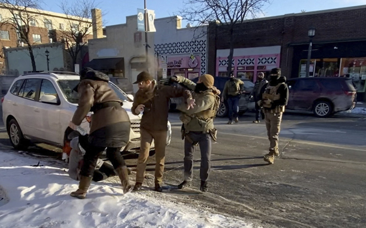 En las imágenes se puede ver cómo un grupo de al menos cinco agentes federales, fuertemente armados, sujetan a Pretti y lo tiran al suelo, después de que el hombre les grita insultos, golpea uno de sus coches y rompe una de las luces traseras.