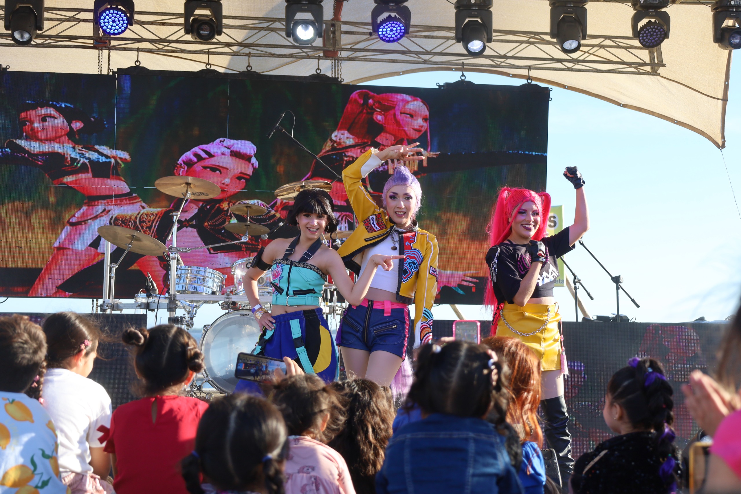 La jornada musical contó con la presentación de un espectáculo de K-Pop Demon Hunters y Saja Boys, quienes ofrecieron un espectáculo infantil y juvenil, así como Los Sheles, que pusieron a bailar a las familias asistentes, generando un ambiente de sana convivencia y celebración para personas de todas las edades.