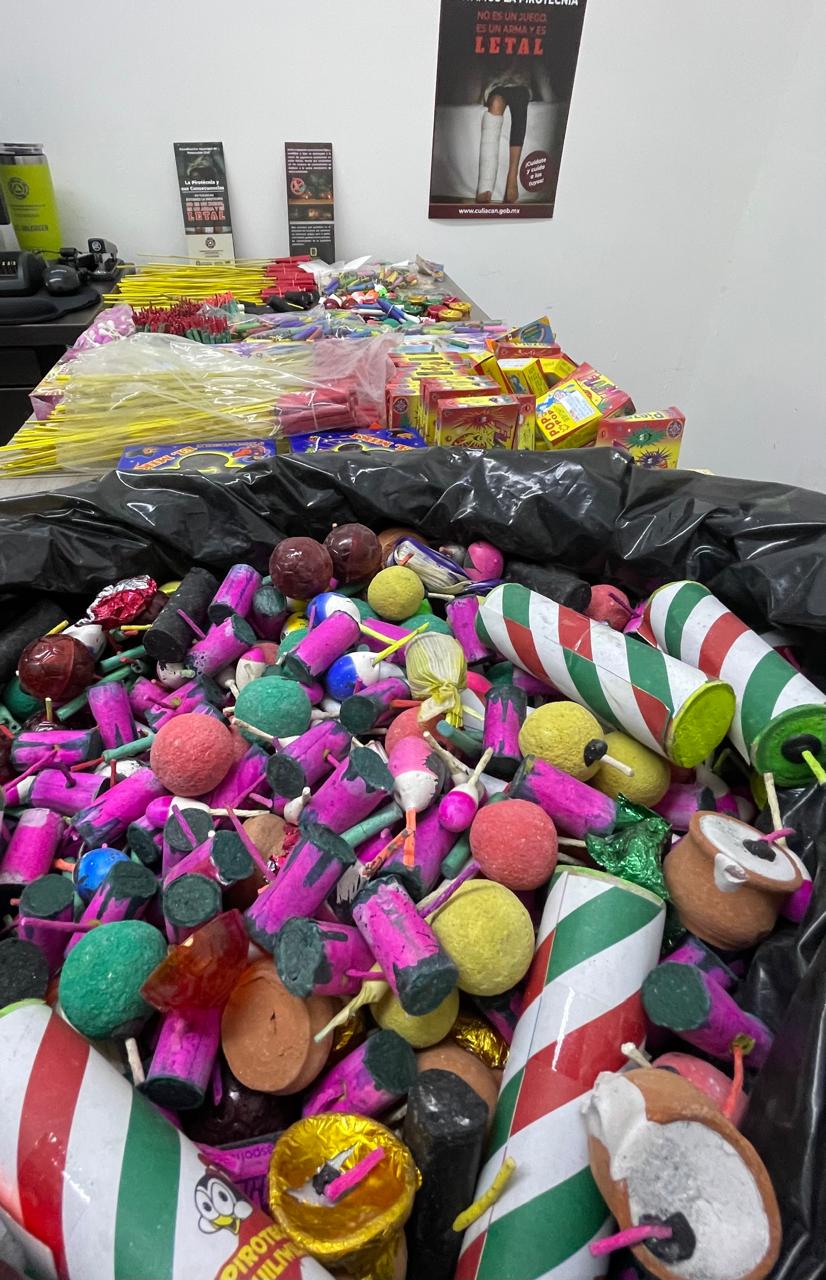 Elementos de la Coordinación Municipal de Protección Civil de Culiacán han intensificado los recorridos de vigilancia en los diferentes comercios y tianguis de la ciudad de Culiacán, y como parte de estas acciones, lograron asegurar otros 20 kilogramos de pirotecnia cuando la comercializaban en una mercería de la colonia Guadalupe Victoria.