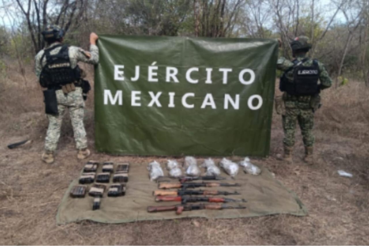 SAN IGNACIO, SINALOA.- Elementos del Ejército Mexicano, en coordinación con la Guardia Nacional, la Secretaría de Marina, la Secretaría de Seguridad y Protección Ciudadana, la Fiscalía General de la República, la Fiscalía General del Estado y la Secretaría de Seguridad Pública del Estado, aseguraron armas largas, cargadores y cartuchos luego de ser agredidos en el municipio de San Ignacio.