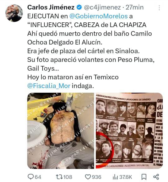 Morelos.- Esta tarde de sábado fue encontrado asesinado el influencer sinaloense Camilo Ochoa Delgado en el municipio de Temixco, Morelos, de acuerdo a información oficial del reportero de la fuente policiaca Carlos Jiménez, quien dio a conocer detalles de la información compartida por las corporaciones del estado de Morelos.