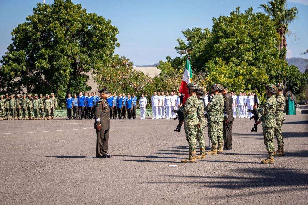 Con la presencia del gobernador Rubén Rocha Moya, se llevó a cabo el acto protocolario, cuya protesta de ley fue encabezada por el comandante del Ejército Mexicano, el general de División Francisco Javier Leana Ojeda.