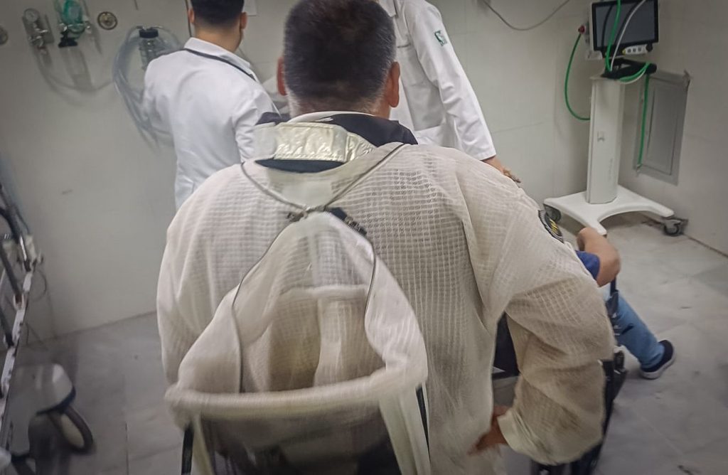 De manera inmediata, personal de Protección Civil Municipal acudió al lugar para atender la emergencia. Al arribar, los elementos localizaron a una mujer que estaba siendo atacada por un enjambre de abejas.