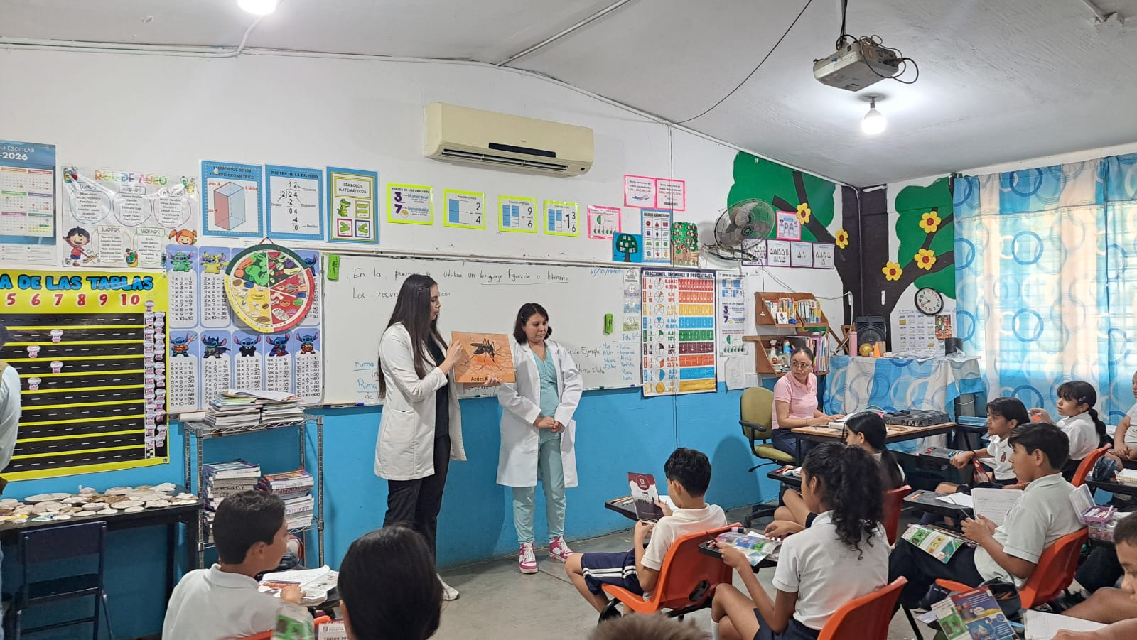 Culiacán, Sinaloa.- Con el objetivo de fortalecer las acciones preventivas en materia de salud pública, la Dirección de Salud Municipal del Ayuntamiento de Culiacán visitó la Escuela Primaria de la colonia Plutarco Elías Calles para compartir con las y los estudiantes información sobre la prevención del dengue y la importancia de mantener entornos limpios y libres de criaderos del mosquito transmisor.