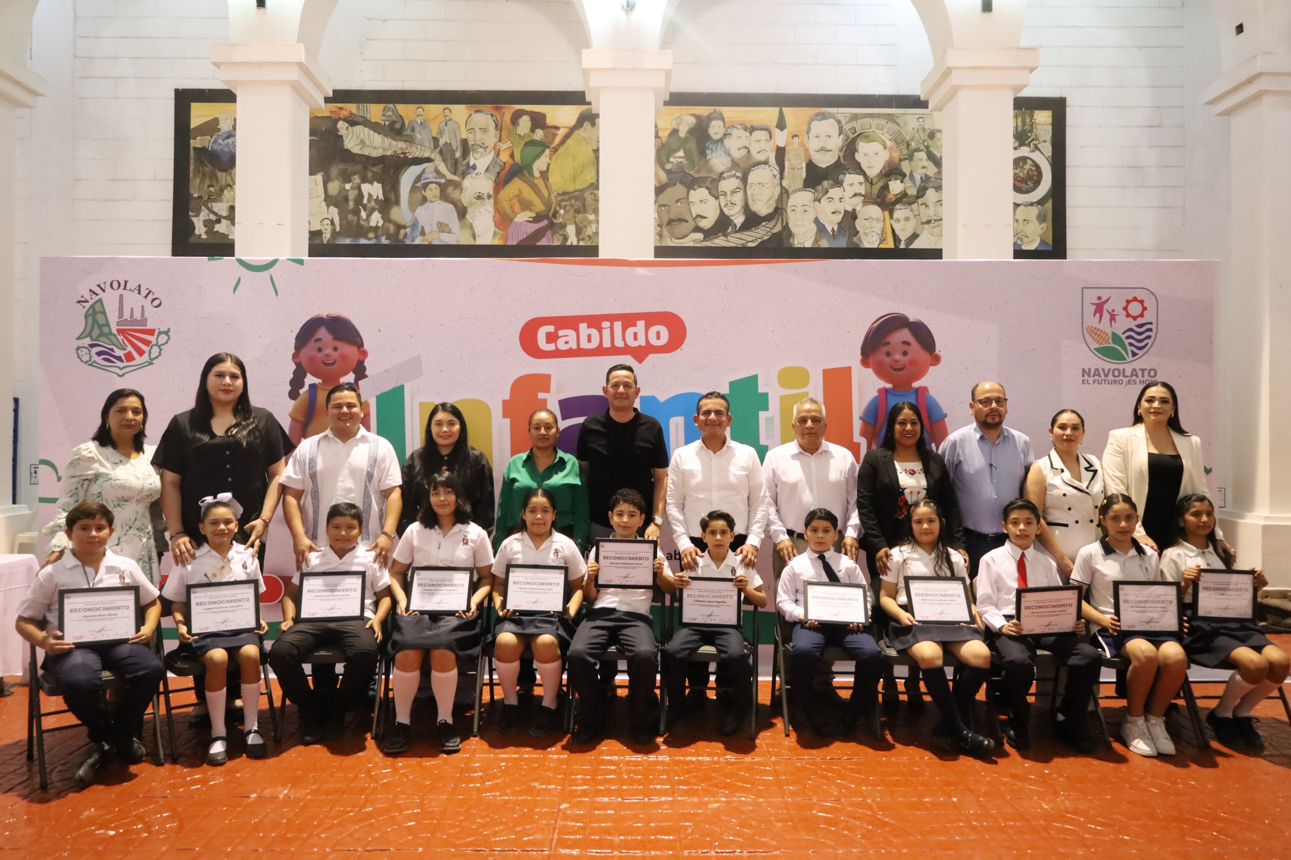 NAVOLATO, SINALOA.- El Ayuntamiento de Navolato realizó la entrega de reconocimientos y estímulos económicos a las niñas y niños que integran el Cabildo Infantil 2026, destacando su participación y el compromiso mostrado mediante propuestas orientadas al desarrollo del municipio.