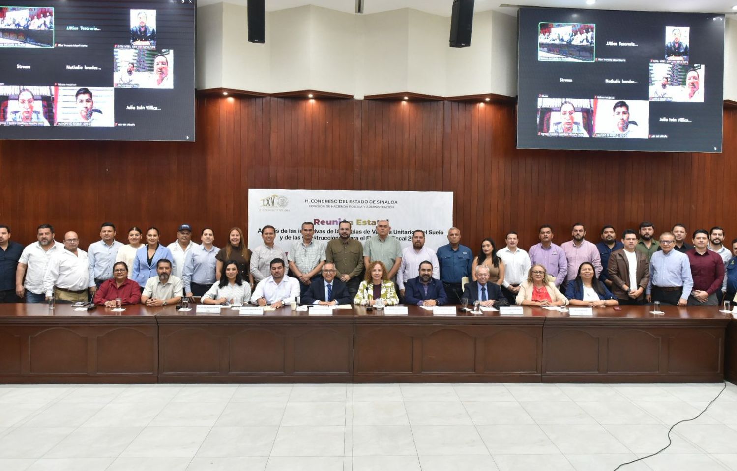 Culiacán, Sinaloa.- El Congreso del Estado de Sinaloa sostuvo este lunes reunión de trabajo con funcionarios de las áreas de finanzas y de catastro de los 20 municipios para consensuar los márgenes de actualización de las Tablas de Valores Unitarios del Suelo y de las Construcciones para el Ejercicio Fiscal 2026, de las cuales se deriva el Impuesto Predial.
