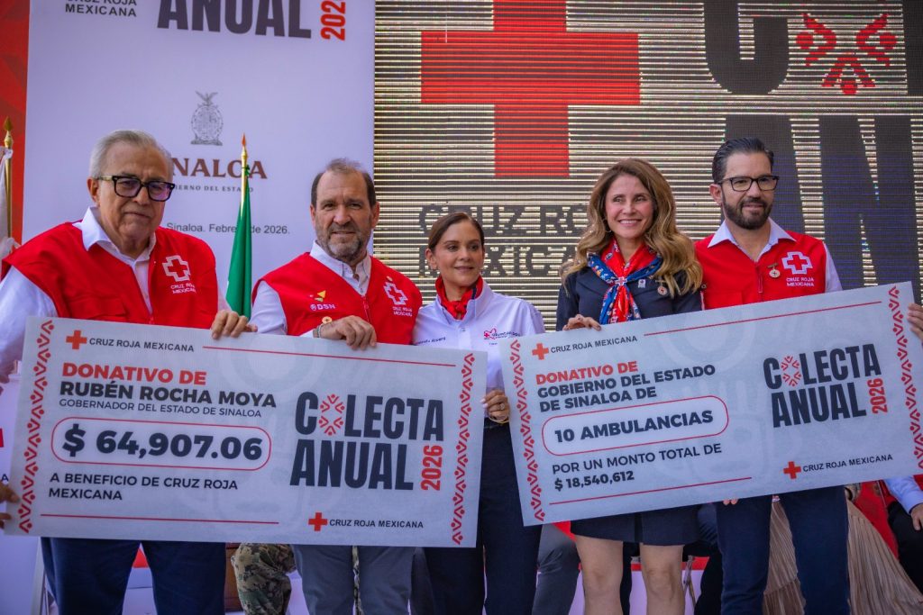 CULIACÁN, SINALOA.- Celebrando los 116 años de la fundación de la Cruz Roja Mexicana, el gobernador Rubén Rocha Moya, dio el banderazo de arranque de su colecta nacional 2026 de esta benemérita institución, la cual, mediante el slogan, “Esto que ves, lo hacemos juntos”, esperan recaudar la suma 45 millones de pesos en la entidad.