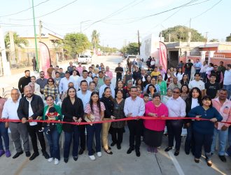 Cumple Ayuntamiento de Navolato con obra de pavimentación y alumbrado en la calle Francisco I. Madero