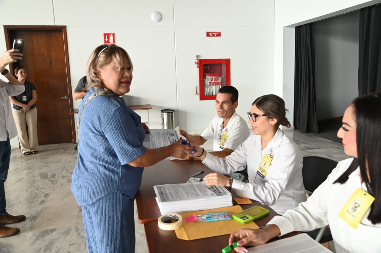 En el Centro de Estudio de Idiomas, María Luisa Vizcarra Castro, secretaria técnica ejecutiva, fue una de las primeras en emitir su voto y destacó la importancia de la participación colectiva.