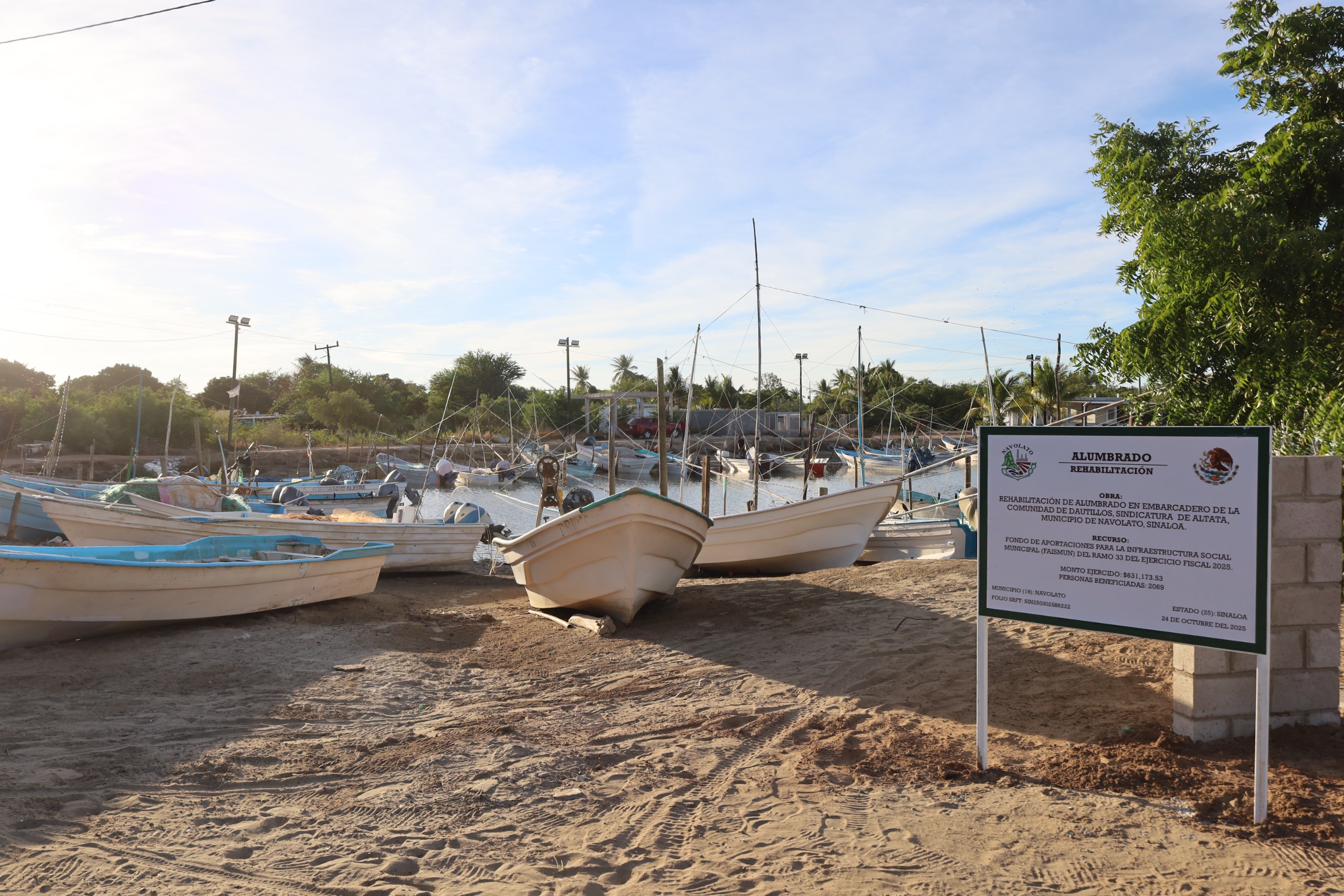 Dautillos, Altata, Navolato, Sinaloa.- Como resultado del trabajo conjunto entre gobierno y ciudadanía, el Presidente Municipal de Navolato, Dr. Jorge Rosario Bojórquez Berrelleza, encabezó la entrega de dos importantes obras de rehabilitación de alumbrado público en la comunidad de Dautillos: el embarcadero y el estadio de futbol, acciones que fortalecen la seguridad, la convivencia social y el desarrollo económico de la zona.