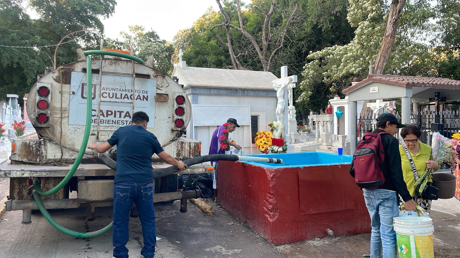 Con apoyo de personal de Salud Municipal, se instalaron puntos de hidratación en los principales panteones con el propósito de brindar asistencia a los visitantes durante su estancia.