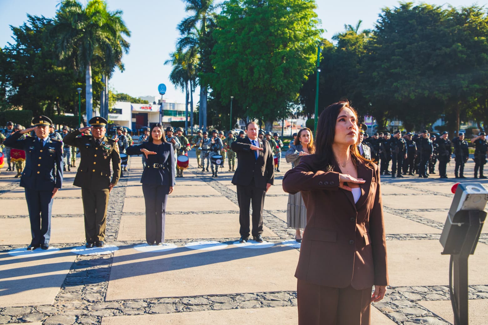 CULIACÁN, SINALOA.- Con motivo del 113 aniversario luctuoso de Francisco I. Madero, autoridades civiles y militares llevaron a cabo izamiento de bandera a media asta en la plaza cívica de Palacio de Gobierno y guardia de honor en el monumento de quien fuera uno de los más prominentes ideólogos y líderes de la Revolución Mexicana.
