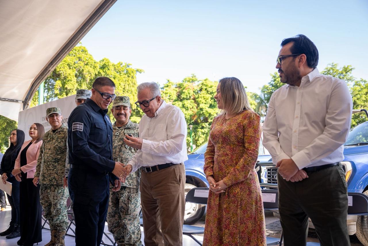 Por su parte, el gobernador Rubén Rocha Moya destacó que la estrategia de seguridad estatal no deja solo a ningún municipio, razón por la cual se entregaron nuevas unidades a las 20 alcaldías.