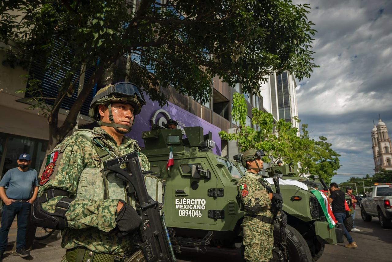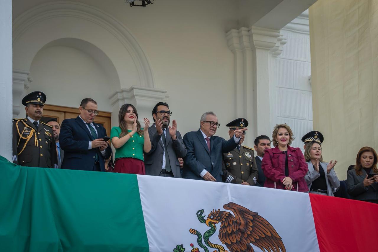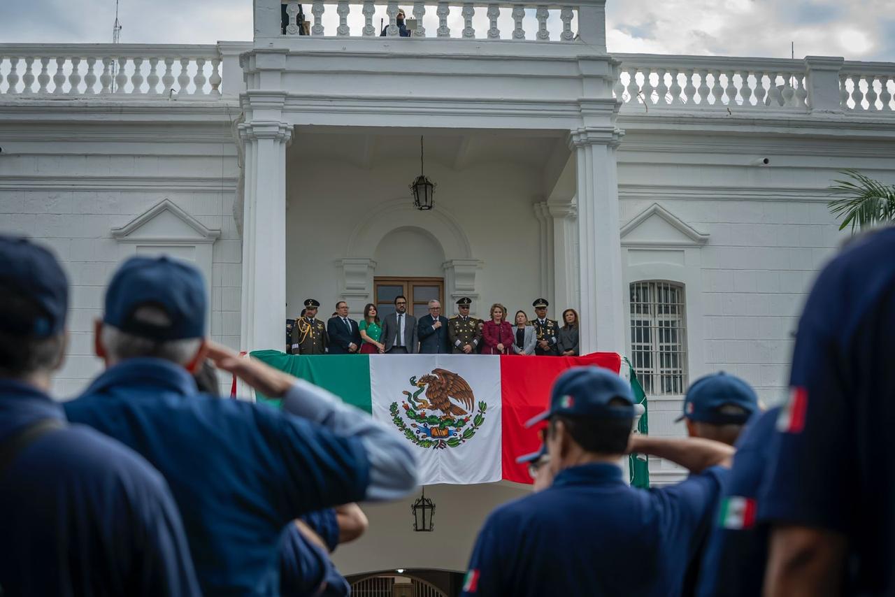 Desde el balcón del Ayuntamiento, el alcalde Juan de Dios Gámez Mendívil, acompañado por el gobernador del estado Rubén Rocha Moya, el cuerpo de regidores, la síndica procuradora y autoridades militares, observó la ceremonia protocolaria mientras los contingentes avanzaban por la avenida Álvaro Obregón.