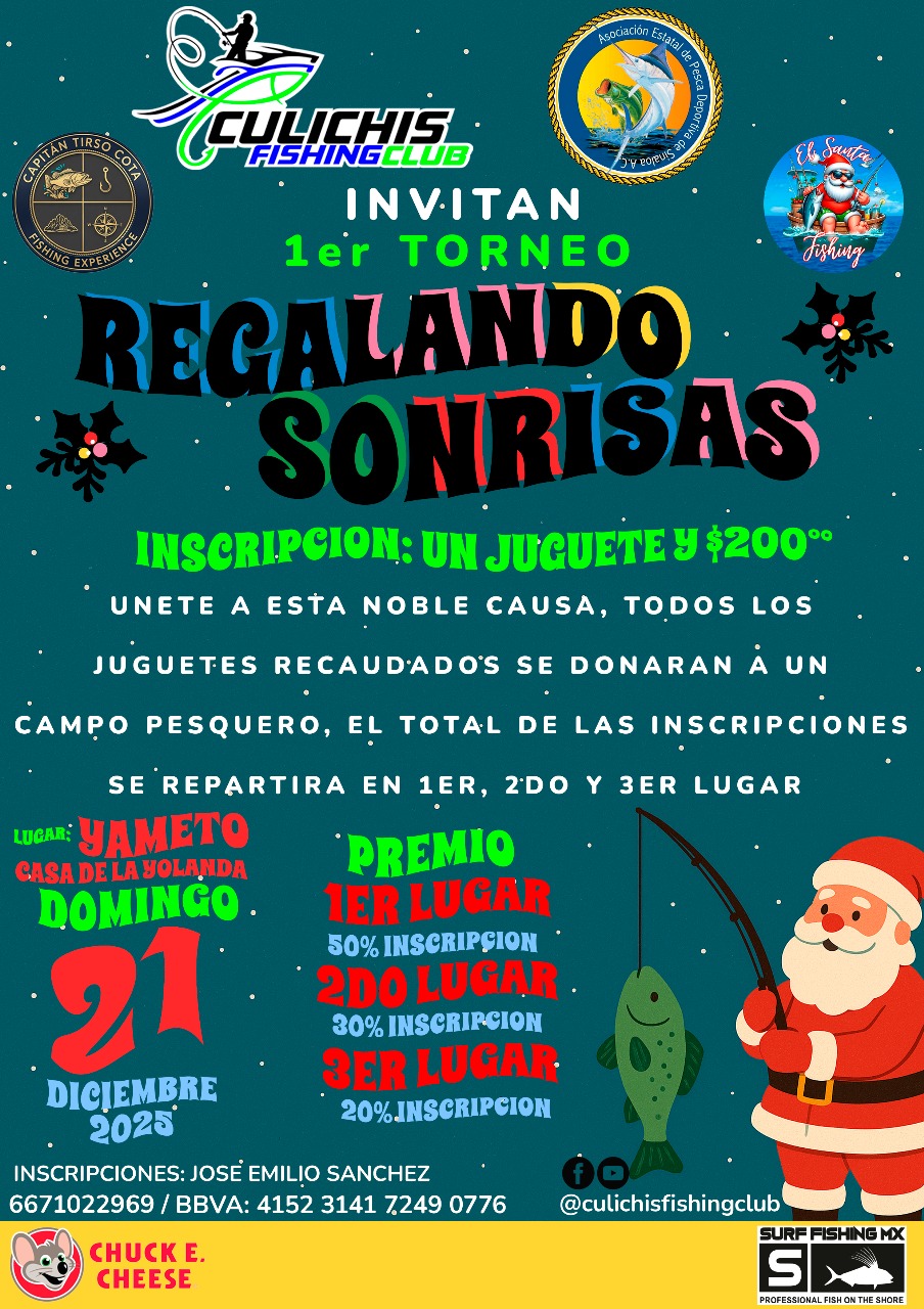 Culiacán, Sin.- Culiacán Fishing Club, en conjunto con Santa Fishing y anunciaron “Regalando Sonrisas”; una actividad que busca llevar alegrías a niños que viven en situación comprometida en campos pesqueros.