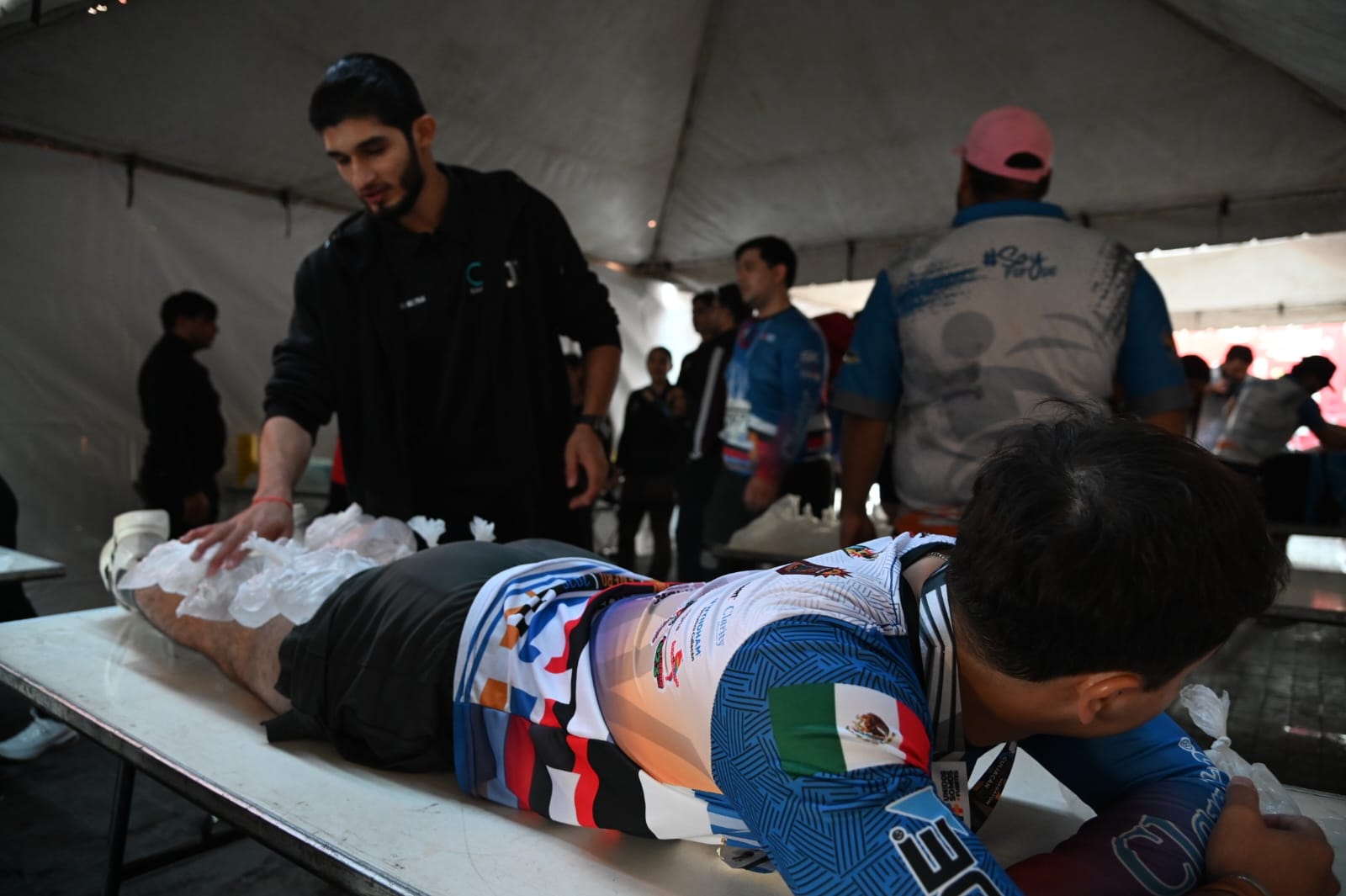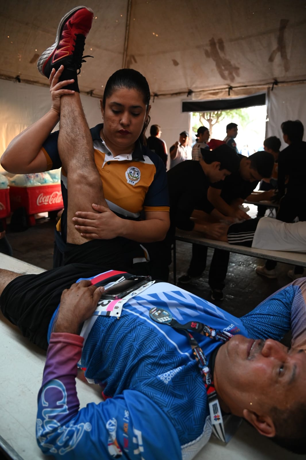 “Como cada año, esta es la edición número 35 del Maratón Internacional de Culiacán y como bien saben siempre estamos en el apoyo en este evento, esta área de recuperación es muy importante porque el atleta llega con ciertas dolencias musculares y entonces aquí les ayudamos a relajar el músculo por el esfuerzo que hizo en los kilómetros”, comentó.