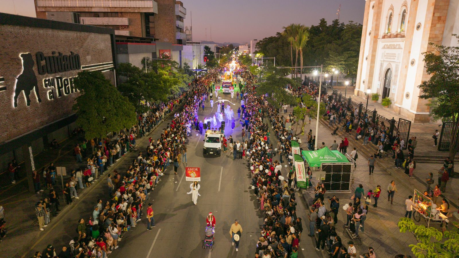 Culiacán, Sinaloa.- Miles de familias abarrotaron la avenida Álvaro Obregón, justo entre Catedral y el Palacio Municipal, para presenciar el Desfile Navideño de Culiacán 2025, que este año llevó por nombre “Un Regalo de Paz”.