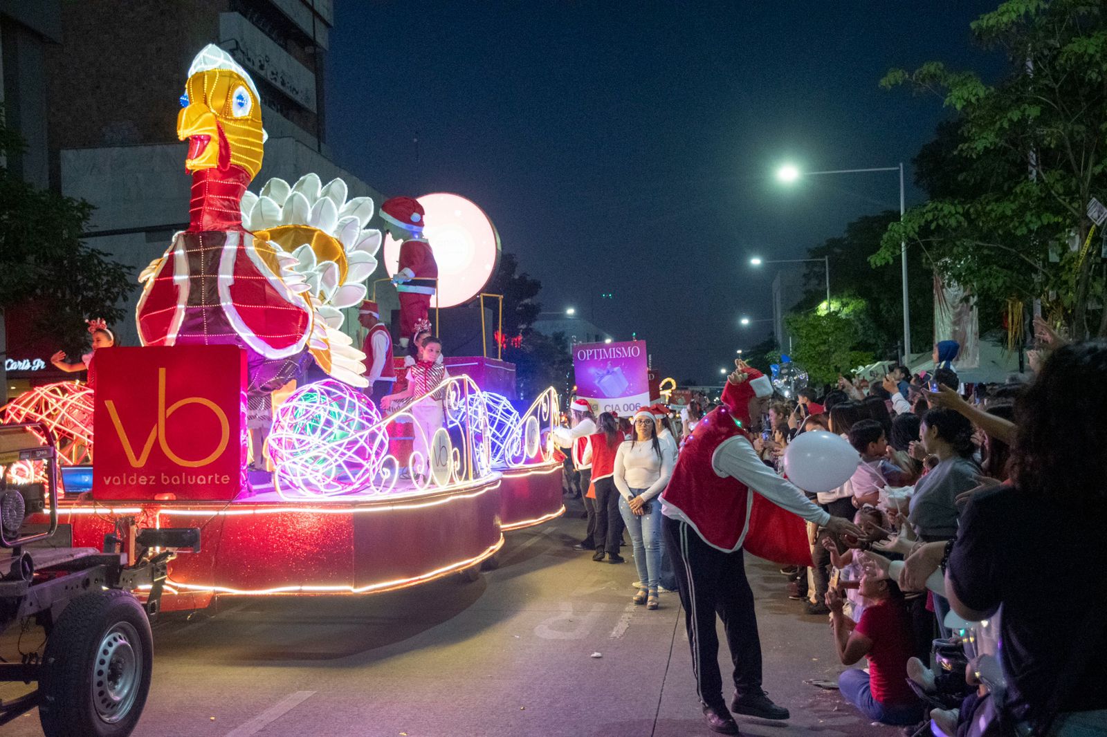 Los carros alegóricos sorprendieron con temáticas como la Estrella de Belén, la Anunciación, el Nacimiento, los Reyes Magos, un gigantesco árbol navideño, la magia de los regalos al amanecer, la tradicional cena de Navidad, dulces típicos, la Fábrica de la Felicidad, el Buzón y Trineo de Santa, espectáculos circenses, castillos de princesas, Navidad en el campo, bochos convertidos en trineos, Shrek navideño, las Chicas Cocodrilo y muchas otras propuestas festivas que emocionaron a niños y adultos.