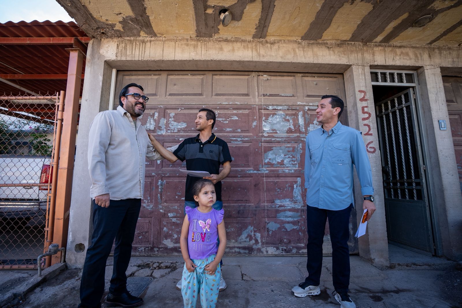 Durante este recorrido expresó que “venimos a entregar cinco escrituras a la puerta de la casa de estas familias. Son familias que tienen entre 15 y 17 años aquí y que tenían este trámite pendiente. Sabemos lo importante que es para ellos tener este documento en sus manos y poder acreditar que ahora sí su patrimonio ya es su patrimonio. Además, en cada visita aprovechamos el contacto con la ciudadanía, porque siempre nos reportan lámparas, baches o fugas; el acercamiento y la escucha siempre son de gran beneficio”.