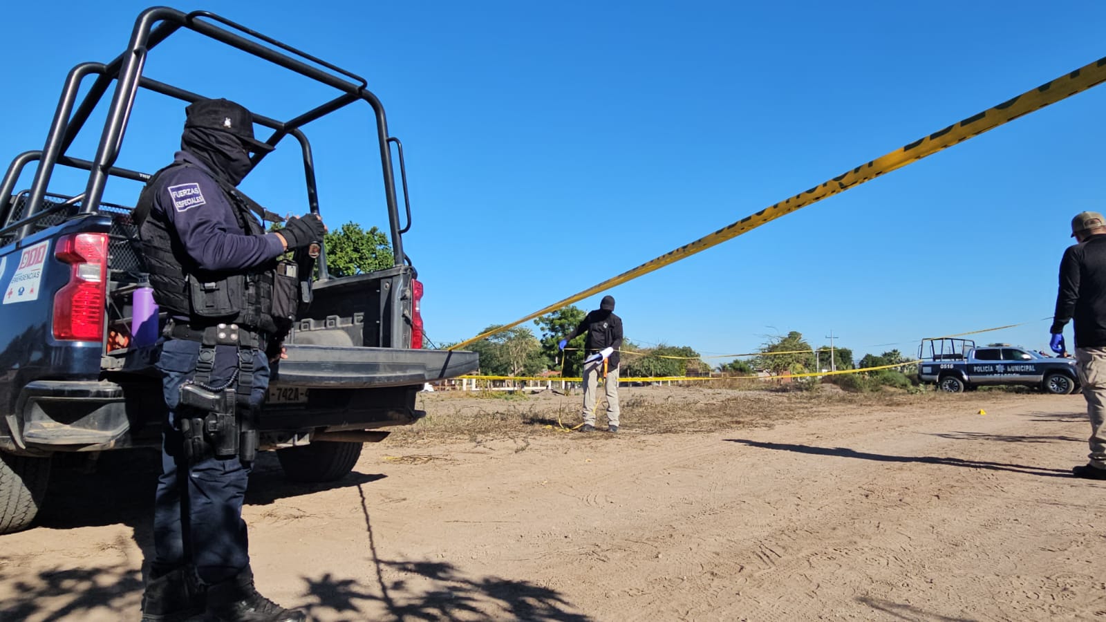 Culiacán, Sinaloa.- Dos hombres jóvenes fueron encontrados asesinados a balazos con ráfagas de arma larga durante la mañana de este lunes 22 de diciembre del 2025 a un costado de un camino de terracería que corre paralelo un canal de riego frente a la comunidad del Ejido Buenos Aires perteneciente a la sindicatura de San Pedro en el municipio de Navolato.