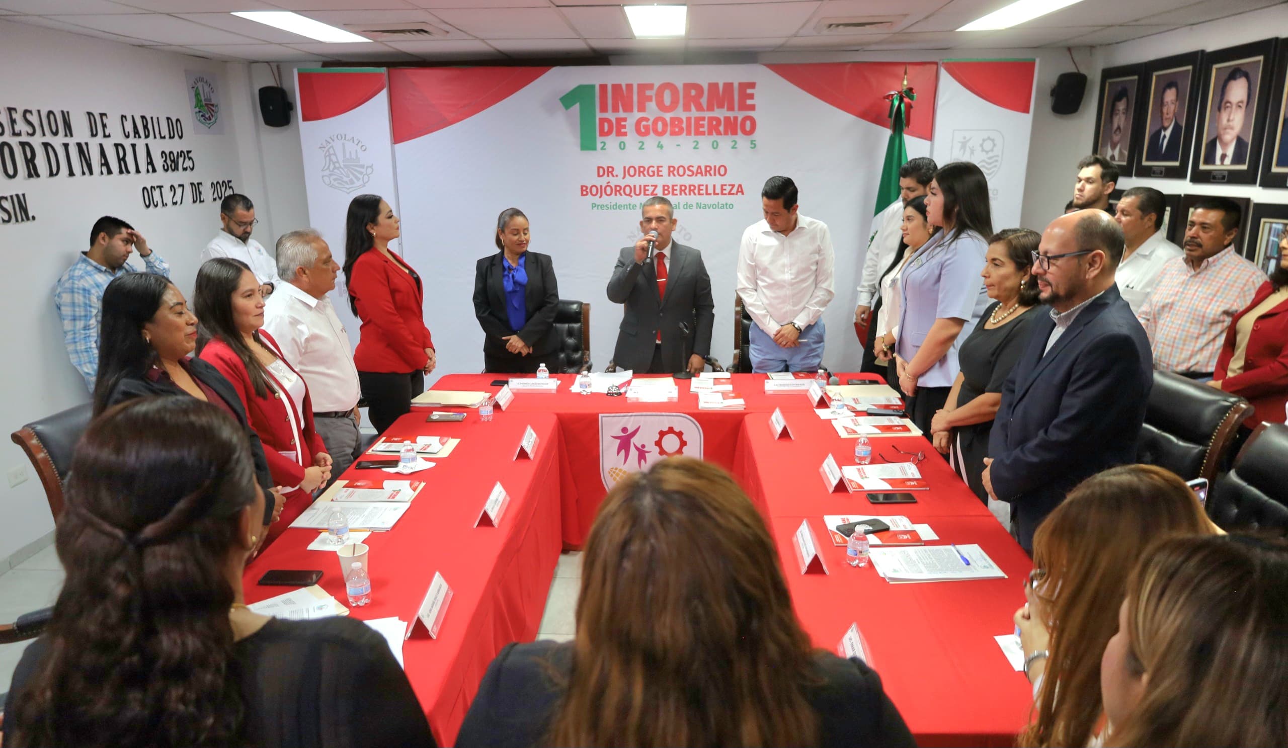 Navolato, Sinaloa.- El presidente municipal, Dr. Jorge Rosario Bojórquez Berrelleza, entregó al Cabildo de Navolato su Primer Informe de Gobierno, donde destacó los avances logrados durante el primer año de su administración, enfocados en la transparencia en el manejo de los recursos públicos, la mejora en obras y servicios, y la participación ciudadana como eje central para definir las prioridades del municipio.