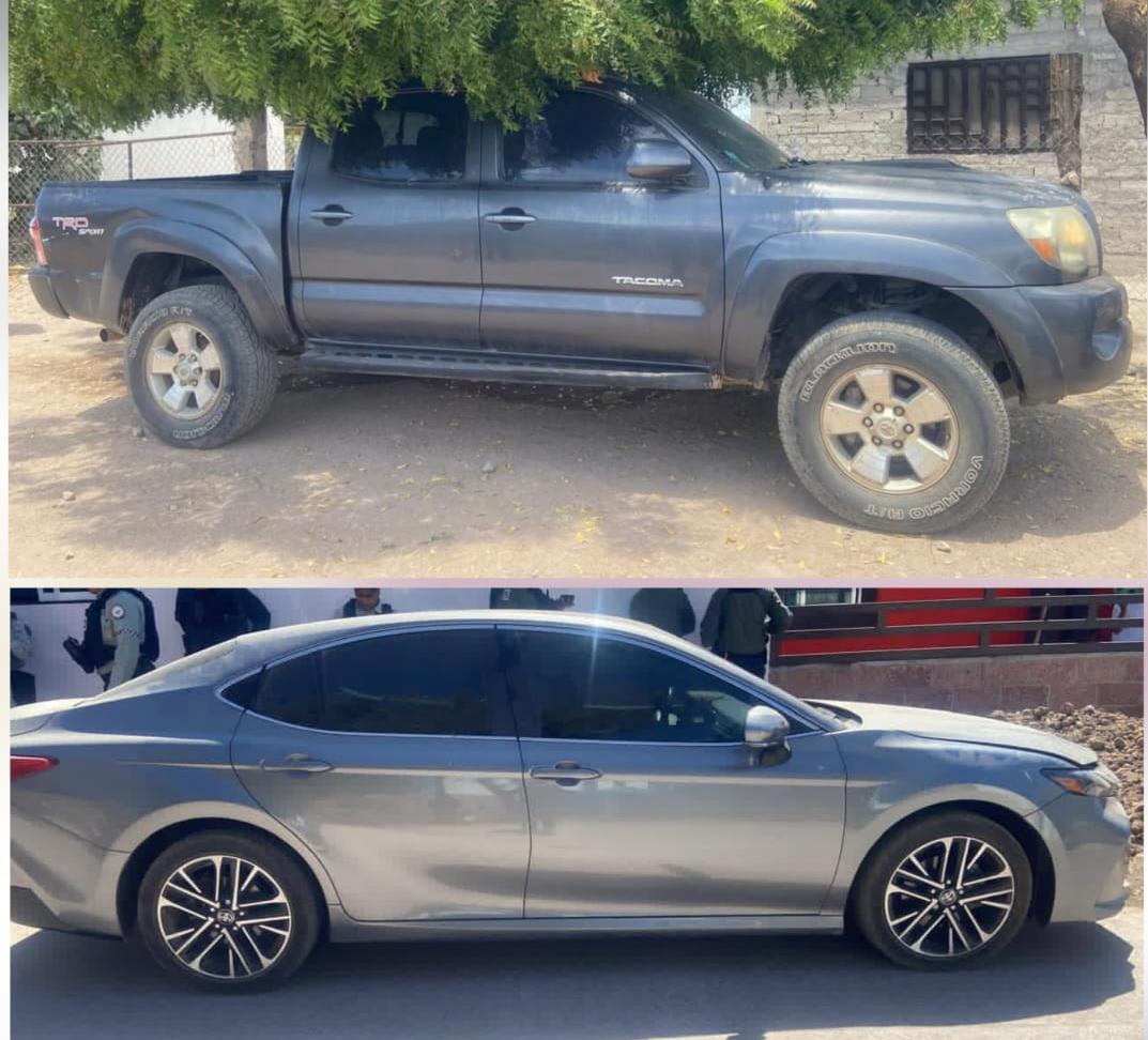 • 1 vehículo marca Toyota, línea Tacoma, con alteraciones en el número de serie y reporte de robo.