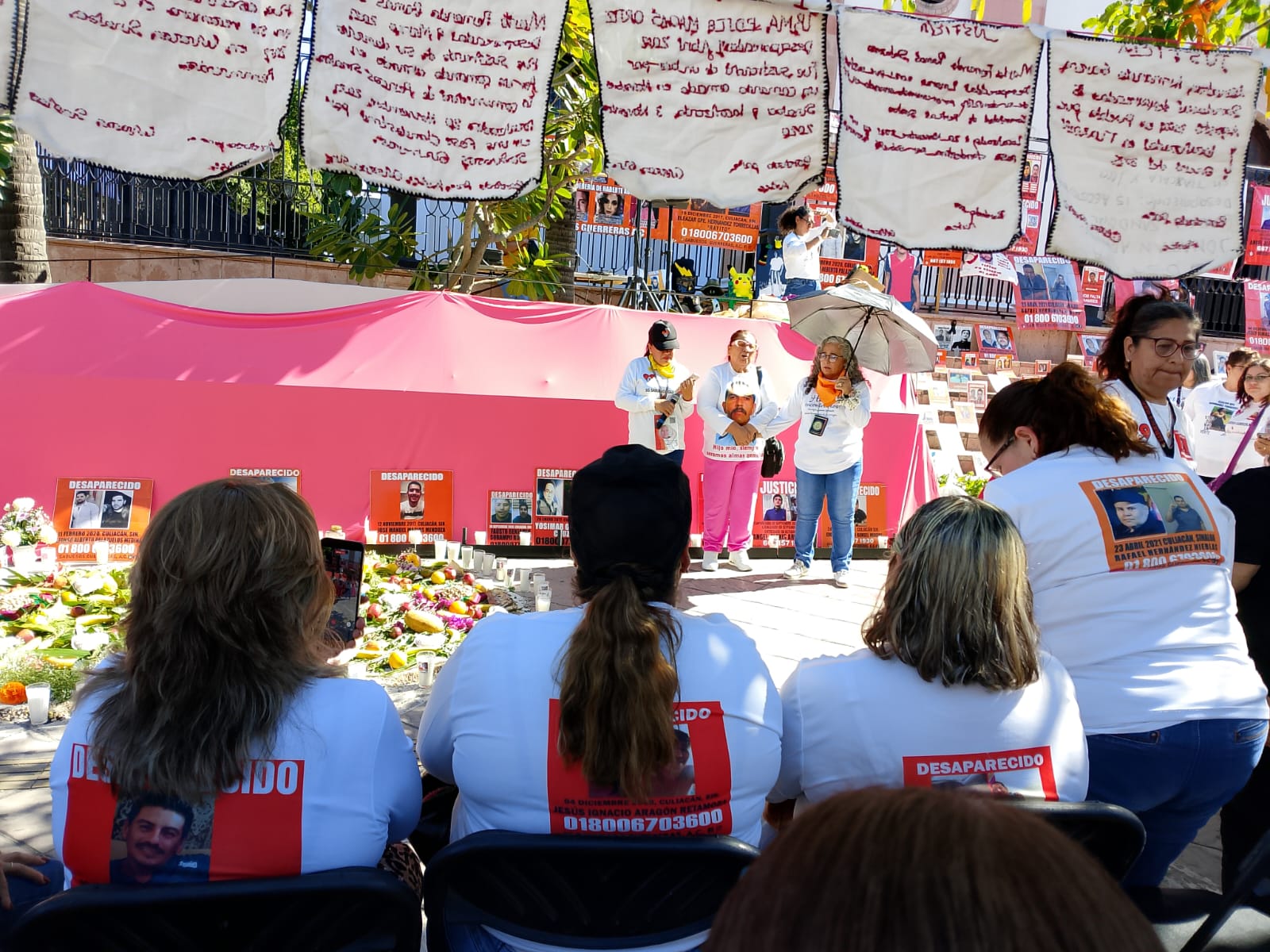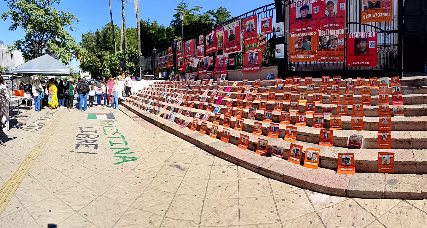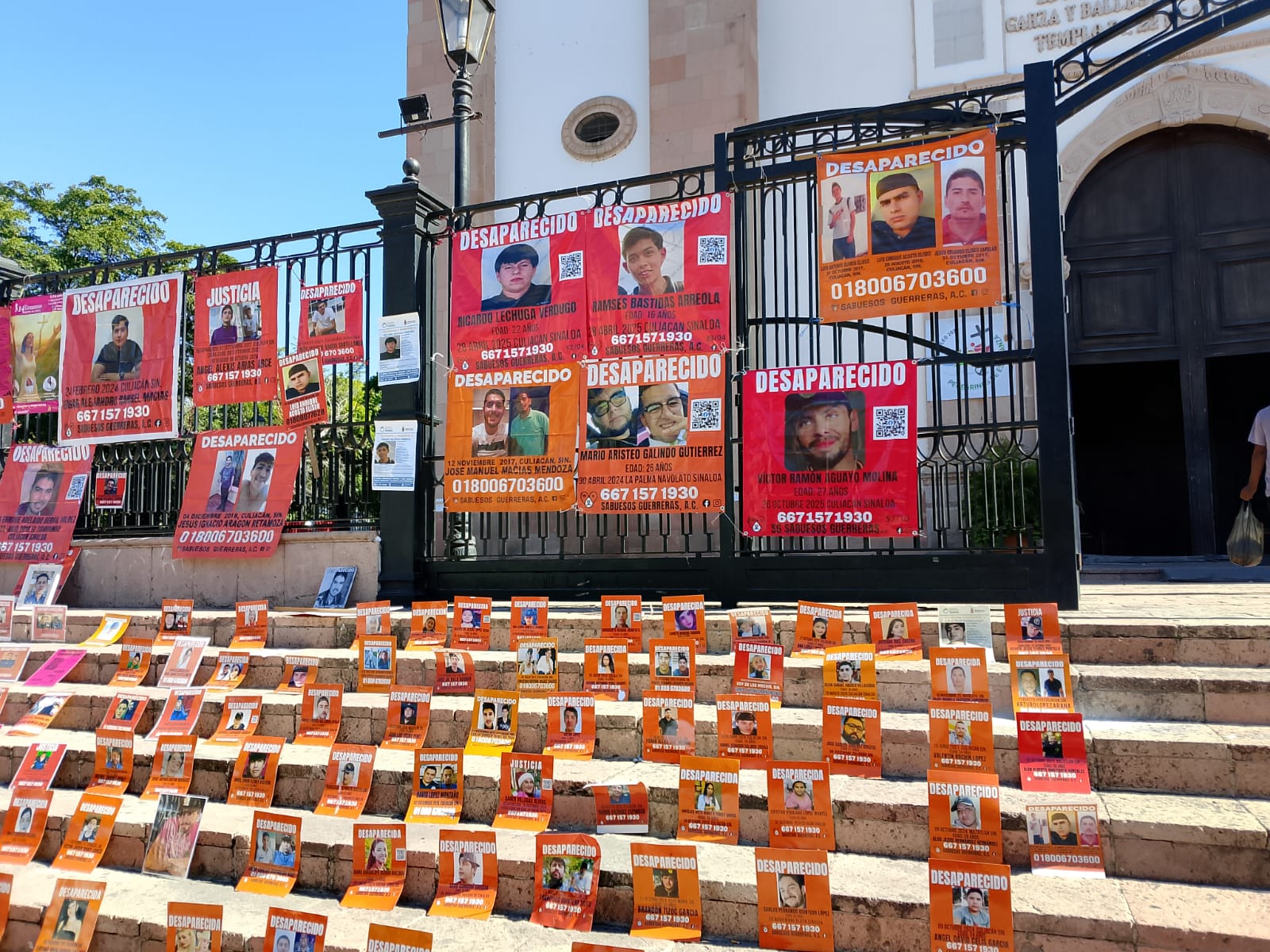 Culiacán Sinaloa.- María Isabel Cruz Bernal, líder de las Sabuesas Guerreras AC, ante una asistencia de más de 80 personas, puso en marcha el mural de personas desaparecidas mismo que se encuentra ubicado a un costado de las escalinatas de la basílica de Catedral; en él se plasman 217 rostros de personas que hasta el momento no han sido localizadas de parte de las autoridades competentes.