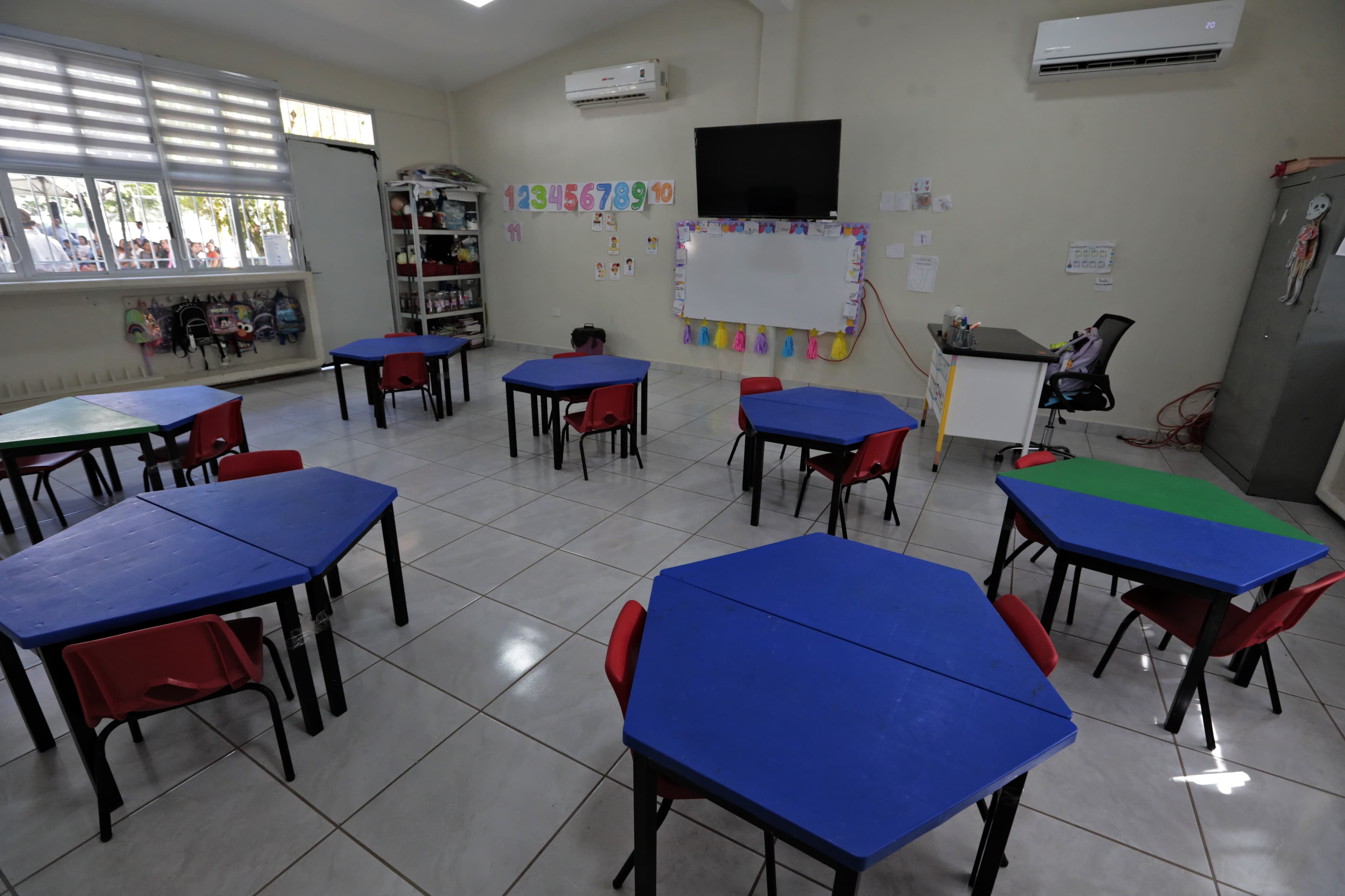 Además de las tres aulas nuevas, el gobernador del estado entregó diversos enseres de cocina, que incluyó un refrigerador, cilindros de gas y estufas, para equipar el área de cocina del plantel, donde se preparan los alimentos calientes para los niños.
