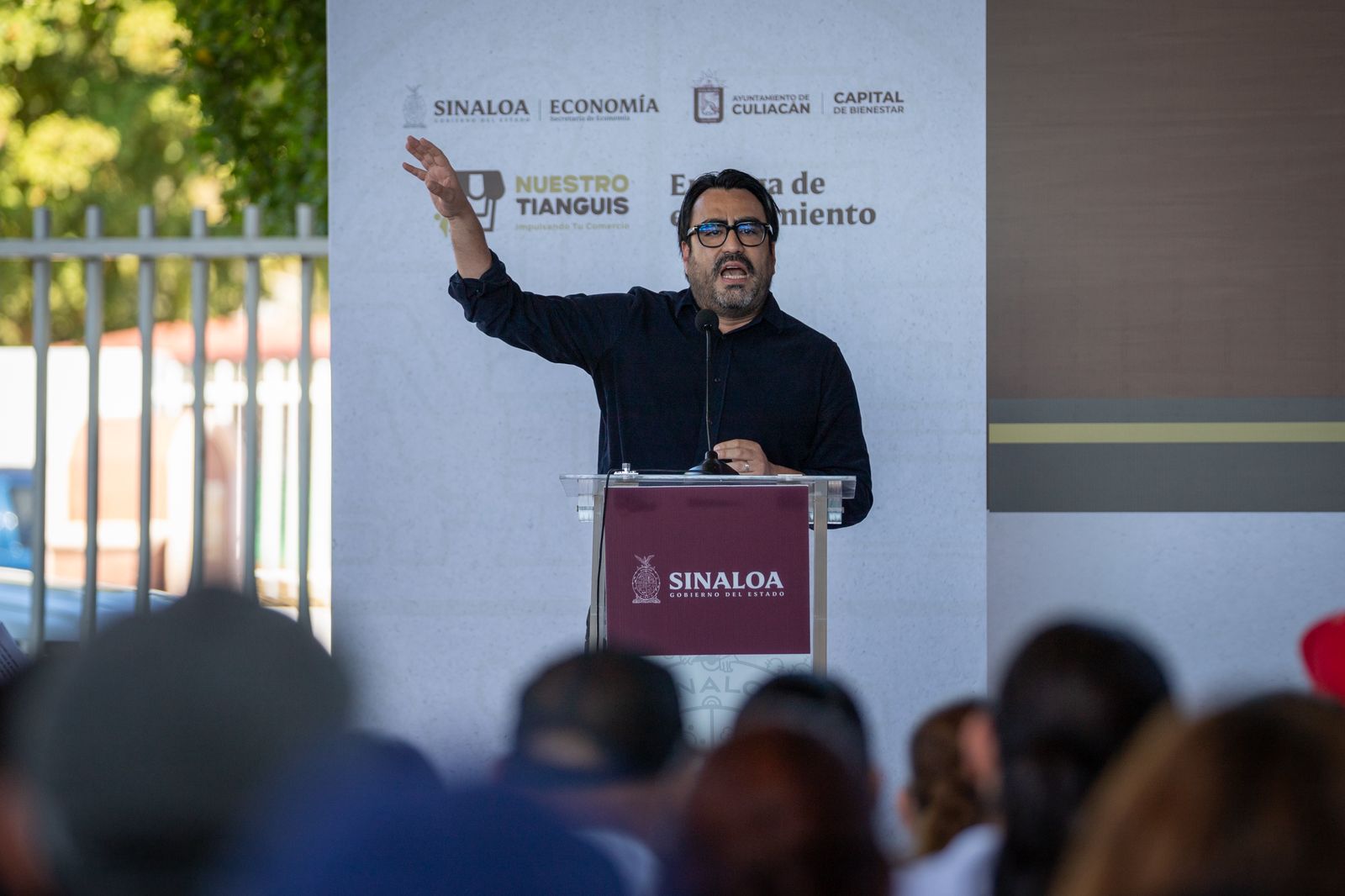 En su mensaje, el mandatario estatal refrendó que desde el año 2023 se han creado programas en apoyo a los culiacanenses que ofrecen productos y mercancías en los diferentes tianguis de la capital sinaloense.