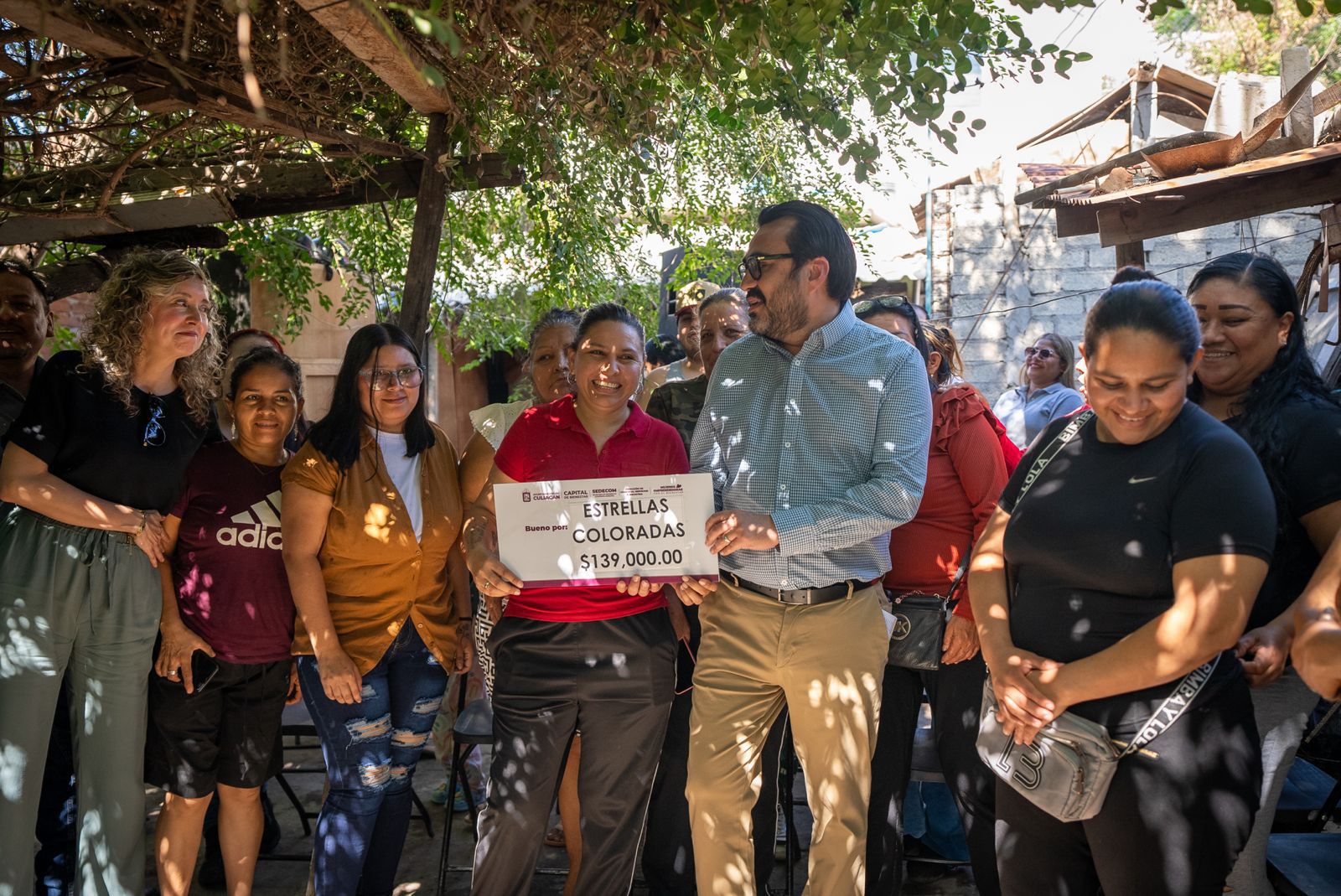 Culiacán, Sinaloa.- En una jornada más de impulso a la economía local, el presidente municipal Juan de Dios Gámez Mendívil entregó un cheque por 139 mil pesos al grupo Estrellas Coloradas, integrado por 13 mujeres participantes del programa Mujeres Emprendedoras por el Bienestar.
