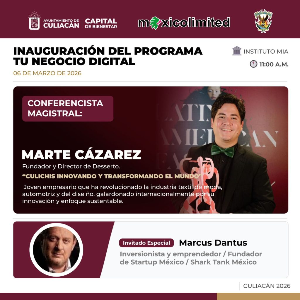 CULIACÁN, SINALOA.- El Ayuntamiento de Culiacán mantiene abierta la convocatoria para que emprendedores y empresarios locales accedan a una beca del 100% en el programa “Tu Negocio Digital”, en colaboración con la empresa mexicana Mexico Limited. El plazo vence este jueves 26 de febrero.