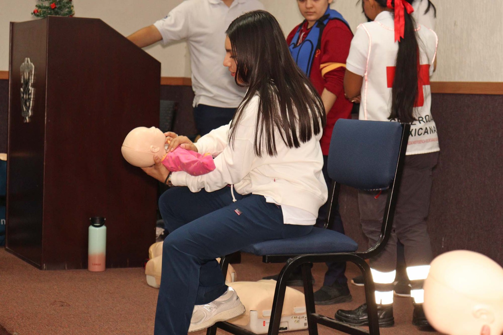 Cabe mencionar que estuvieron presentes, por parte de Cruz Roja Mexicana, Jesús Armando García Alcaraz, encargado de capacitaciones externas; el instructor Jesús Daniel Castro Nevárez y los monitores Melissa Michel Vargas Chávez y Stephanie Abigail Pérez Huerta.