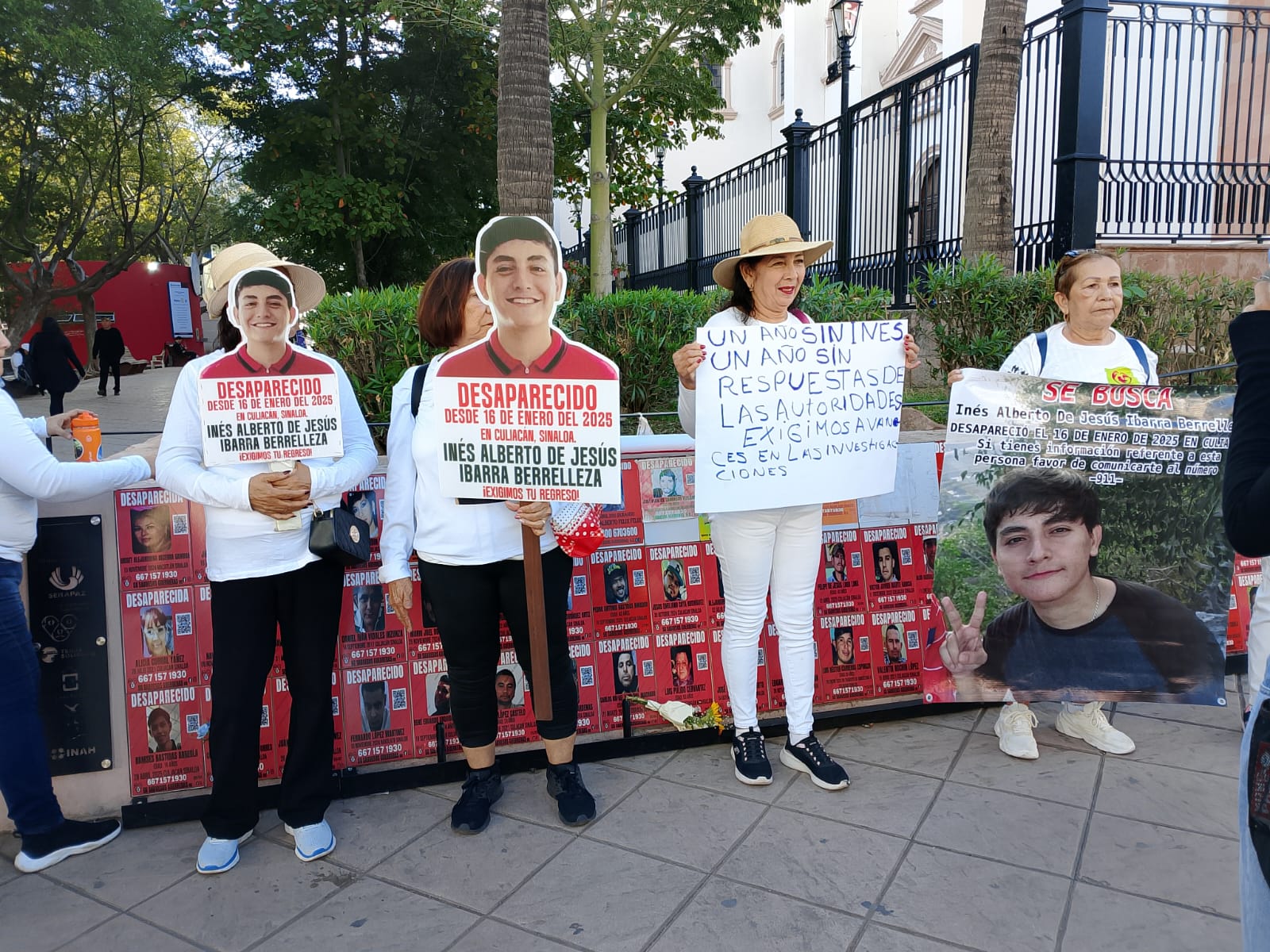 CULIACÁN, SINALOA.- Familiares, amigos y representantes de buscadoras de la entidad se concentraron durante esta mañana en la Basílica de Catedral y culminaron con una marcha en la Fiscalía General del Estado, como una medida de protesta y rechazo por la actitud de indiferencia mostrada por la representación social, Rosa Isela Ibarra tía de Inés Alberto de Jesús Ibarra Berrelleza, con lágrimas en los ojos narró que su sobrino hoy cumple un año de su desaparición.