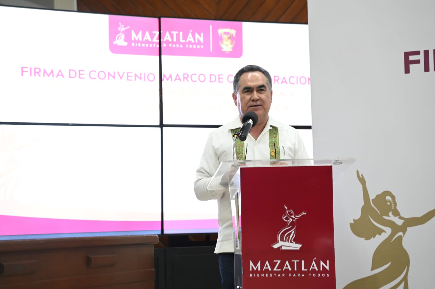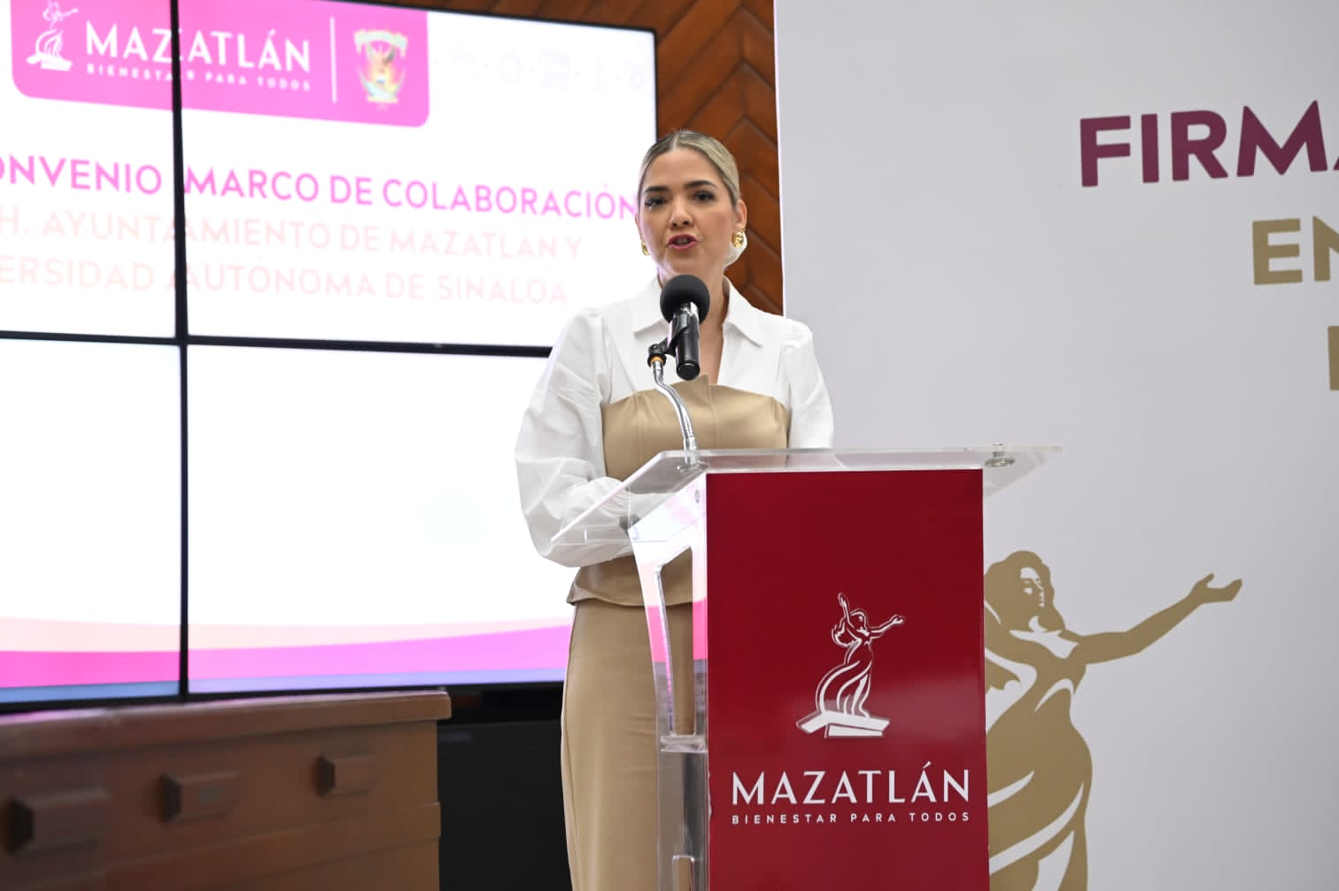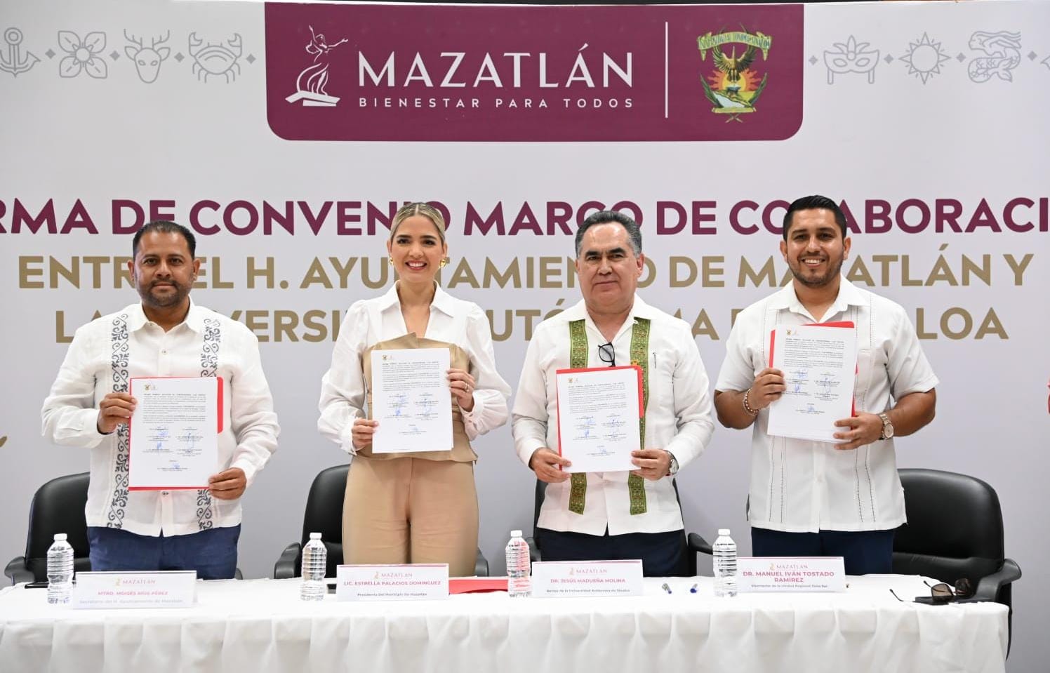 La presidenta municipal de Mazatlán, Estrella Palacio Domínguez destacó que con este Convenio se abre un puente de colaboración que fortalecerá la educación, la cultura, el deporte, la investigación y el desarrollo social para el bienestar del municipio y con el objetivo en común de hacer de Mazatlán un municipio más fuerte, más justo y con mayores oportunidades para todas y todos.