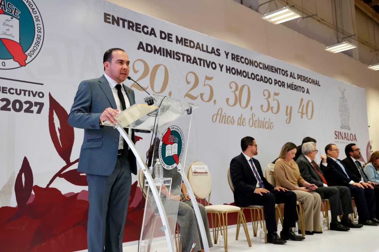 “Hoy al entregar estas medallas celebramos mucho más que un número de años, celebramos vocaciones que han sostenido el aparato gubernamental con su esfuerzo diario, cada año de servicio de ustedes representa decisiones éticas, jornadas intensas, responsabilidad frente a la ciudadanía y una convicción que distingue al servidor público sinaloense”, dijo.