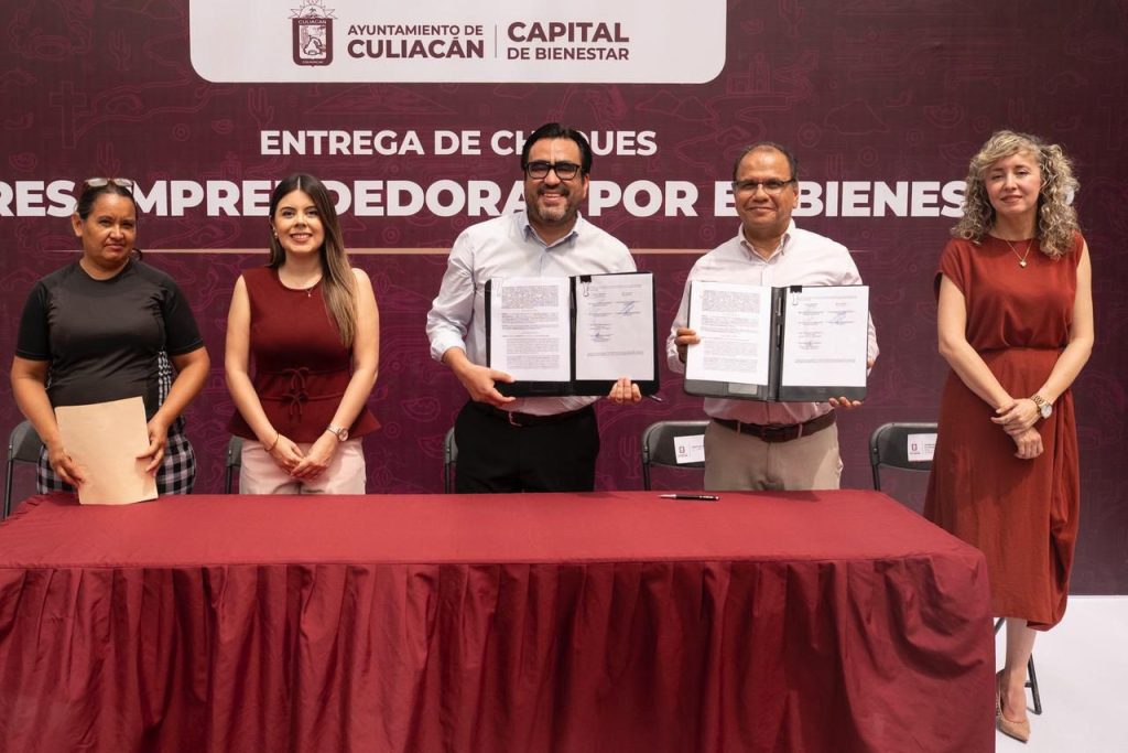 CULIACÁN, SINALOA.- Como parte del compromiso con el bienestar y la autonomía económica de las mujeres, el presidente municipal, Juan de Dios Gámez Mendívil, encabezó la entrega de cheques del programa Mujeres Emprendedoras por el Bienestar, además de la firma de la segunda adenda para continuar la colaboración con Banca Afirme, orientada a ampliar las oportunidades de acceso a servicios financieros.