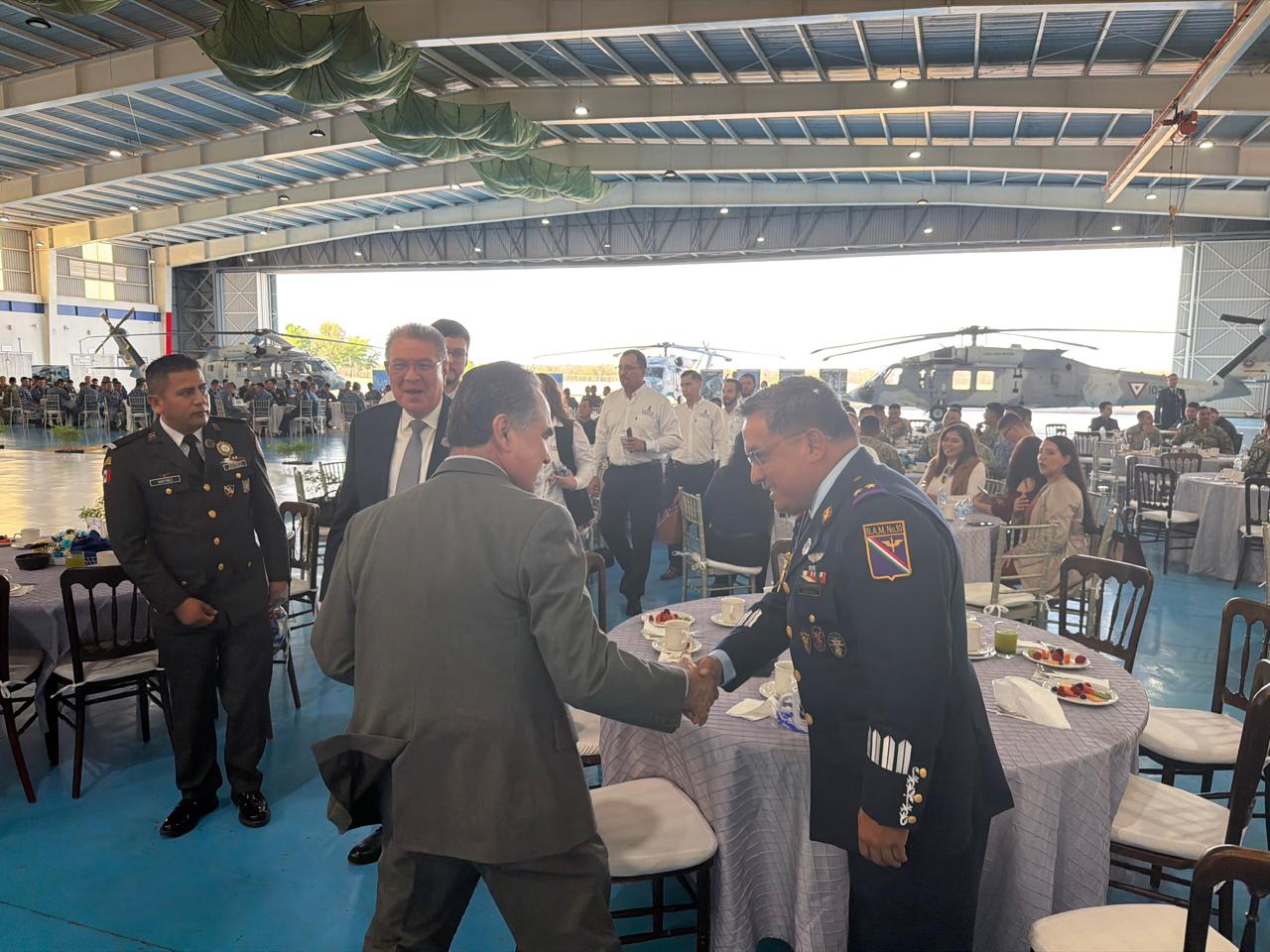 El evento, que se desarrolló en las instalaciones de la Base Aérea Militar número 10, contigua al Aeropuerto Internacional de Culiacán, estuvo encabezada por el General Ala Piloto Aviador de Estado Mayor Edgar Emmanuel Campos Martínez, Comandante de dicha Base; el Gobernador de Sinaloa, doctor Rubén Rocha Moya; el comandante de la Tercera Región Militar, general de División, Héctor Ávila Alcocer, y diversas personalidades.