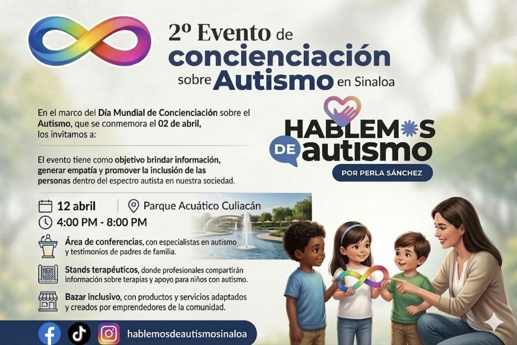 CULIACÁN, SINALOA.- Con el objetivo de sensibilizar a la sociedad y brindar herramientas útiles a las familias, se llevará a cabo el Segundo Evento de Concienciación sobre el Autismo en Sinaloa, el próximo 12 de abril en el Parque Acuático de Culiacán.