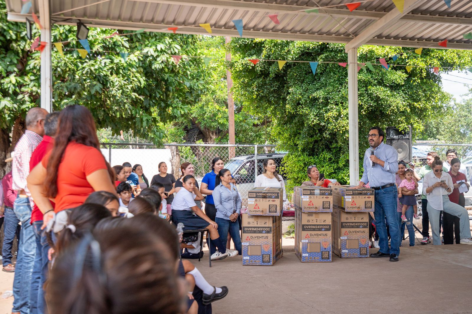 Juan de Dios Gámez cumple compromiso con Escuela Primaria de Casas Blancas, Higueras de Abuya