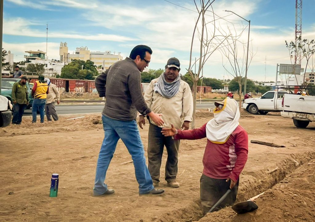 CULIACÁN, SINALOA.- El alcalde Juan de Dios Gámez Mendívil supervisó los avances de una obra integral en el Eje Federalismo, donde se combinan trabajos de mejoramiento vial con la creación de un corredor ecológico que transformará por completo el entorno.