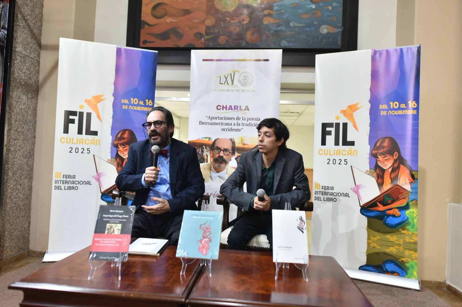 El encuentro de los dos poetas se dio en el marco de la Feria Internacional del Libro, que organiza el Ayuntamiento de Culiacán.