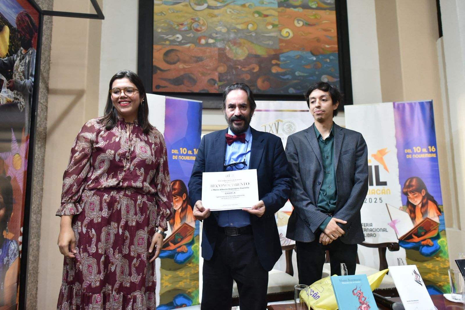 Previamente a la charla también participaron las diputadas María Teresa Guerra Ochoa y Sthefany Rea Reátiga, presidentas de la Junta de Coordinación Política y de la Comisión de Cultura y Artes, respectivamente, quienes resaltaron la trayectoria de Mario Bojórquez y le agradecieron su presencia en el edificio del Congreso del Estado.