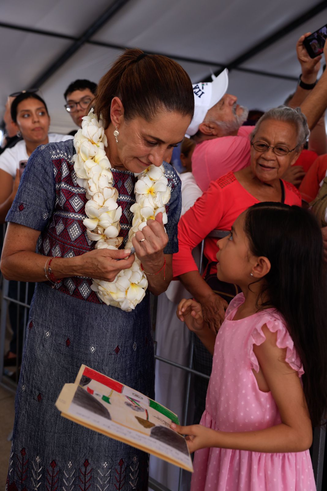 Al darle la bienvenida, el gobernador Rocha destacó que la presidenta Sheinbaum es una mujer de Estado y una mujer demócrata, que inspira a las mujeres mexicanas y a las sinaloenses en la lucha por su liberación, además de que los mexicanos y sinaloenses bien nacidos le reconocen la férrea defensa de la soberanía nacional de México que hace.